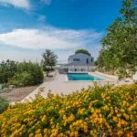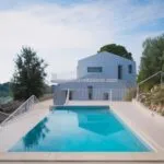 Near to Sperlonga with distant views of the sea and Mount Vesuvius is this modern architect designed villa with pool for sale. Eco home with 3 bedrooms, gardens and olive trees.