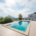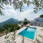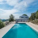 FEATURES Ceramic craquelure, reinforced concrete frame, panoramic view, sea view, terraces, aluminum fixtures, travertine solarium, swimming pool