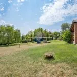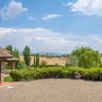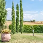 This modern country home in Italy for sale is located in the hills near Monte San Savino and Arezzo. Built in 2013, the semi-detached property measures 136 m² and is move-in ready. It is surrounded by a private 3,600 m² landscaped garden with olive trees, a vegetable plot, automatic irrigation, and perimeter hedging.