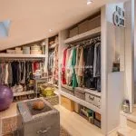 On the first floor, a contemporary staircase leads to a hallway and the master suite, which includes an en-suite bathroom and a walk-in wardrobe.