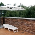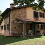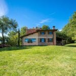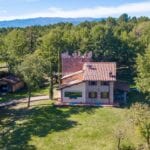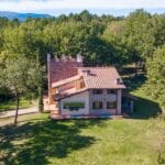 The villa was recently built (2005) and thus is in excellent condition, both structural and aesthetical. On the outside, we can see a mix of exposed stone walls and plastered walls, while on the inside we only have plastered walls. Floors are mainly covered in parquet, but terracotta sections are also present, especially on the stairs. Upper ceilings are supported by wooden beams. On the inside, we can also find fireplaces, stoves and a wood oven in the kitchen.