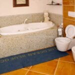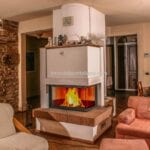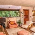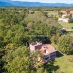 The villa (270 sqm – 2,905 sqft) is laid out onto two above-ground floors plus a basement. On the ground floor we can find an entrance hall, a kitchen, a large living room with a fireplace, 2 bedrooms and 2 bathrooms. On the first floor, there is another living room with a fireplace, 2 more bedrooms and a bathroom. The basement includes a tavern with a kitchenette, a laundry, a bedroom and a bathroom with a tub and Jacuzzi shower.