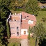 From the outside, via a unique winding copper staircase, we can reach the panoramic terrace on the turret, offering panoramic views of the surrounding Tuscan countryside.