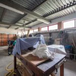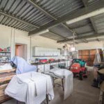 The 100 square metres (1,076 square feet) shed is divided between a garage/storage area, a workshop, and a laundry area with a compact service bathroom.