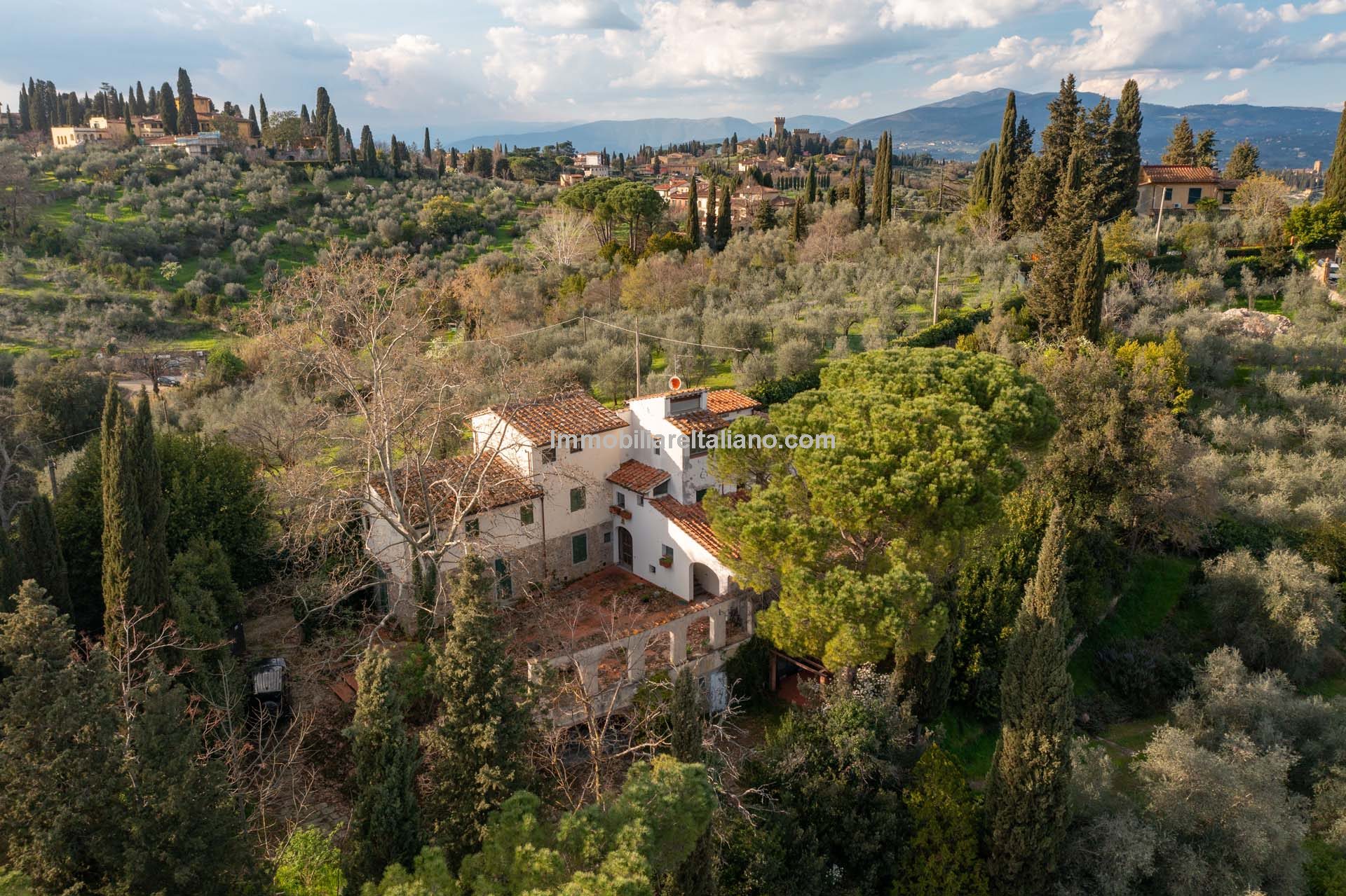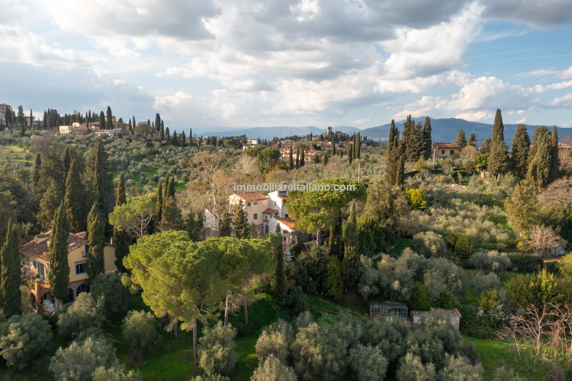 This Florence villa with guest units has been sadly neglected and looking for new owners to restore them to their former glory. Located in the upmarket suburb of Pian dei Giullari the buildings offer almost 900 sqm of internal living space, 4.4-ha park gardens and olive grove.