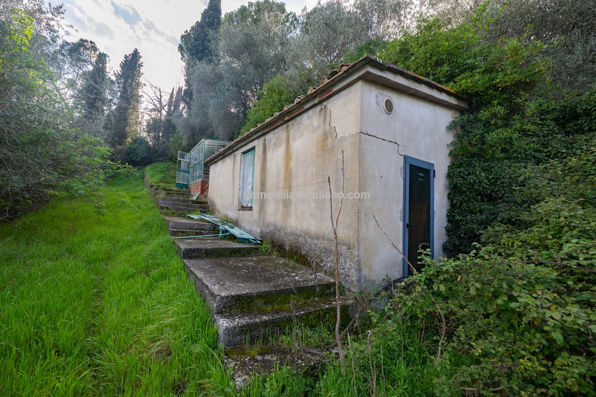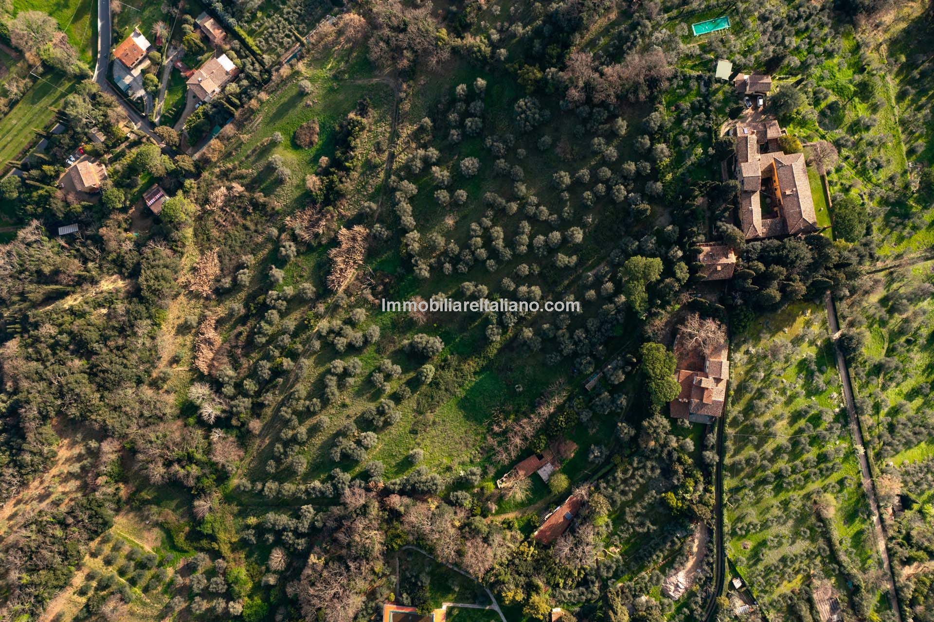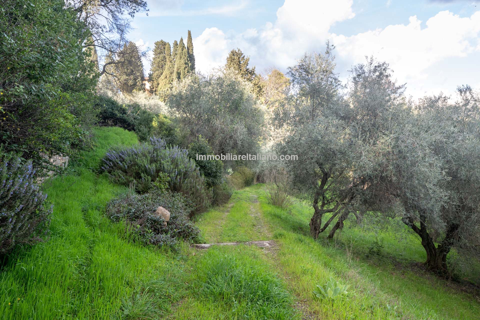 The villa is surrounded by a park of 4.4 hectares (10.9 acres) that includes a garden portion around the buildings, a large olive grove (2.8 ha) that needs to be recovered and some portions of arable land (about 1.0 ha covered largely by trees and bushes) to be cleaned and put back into use.