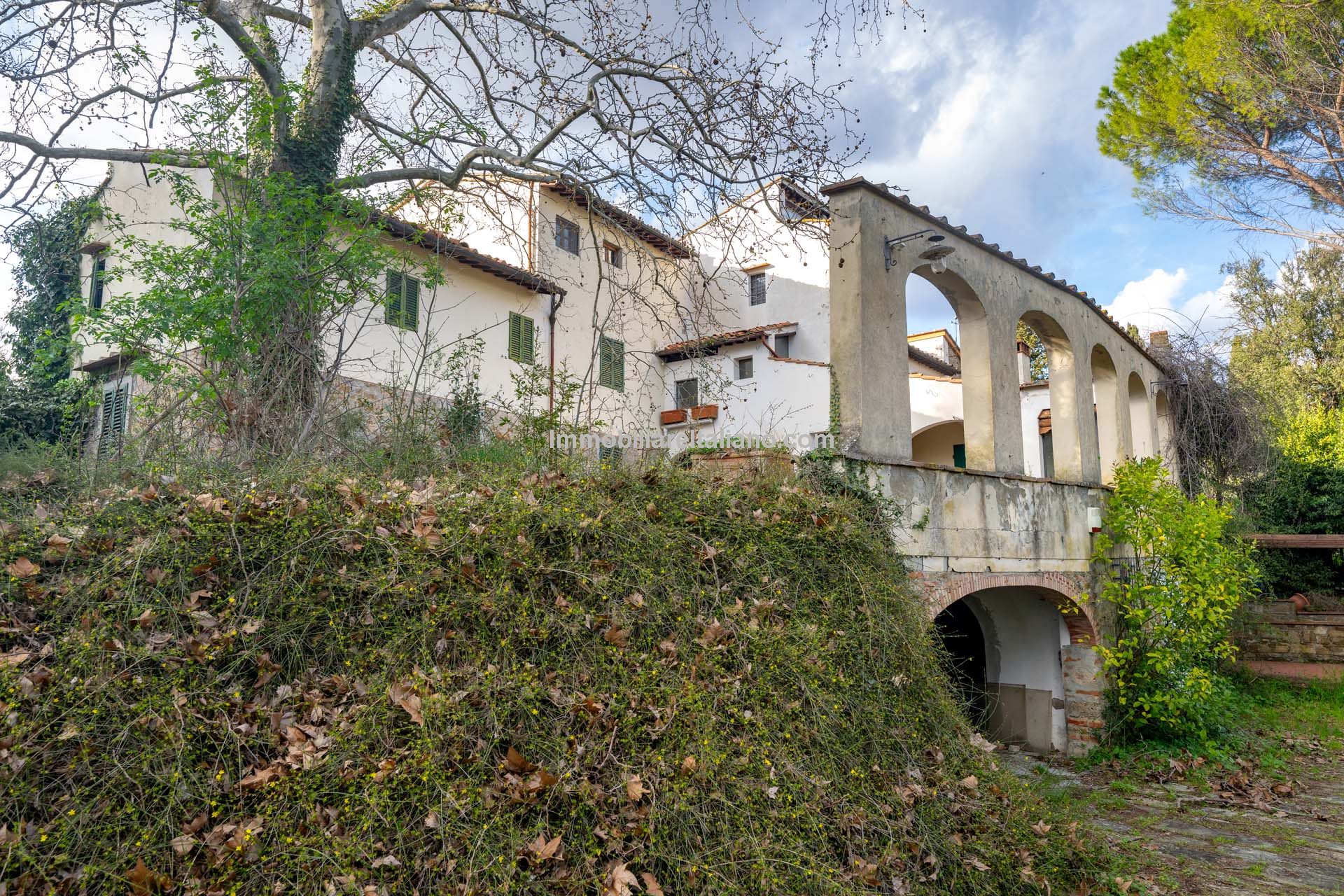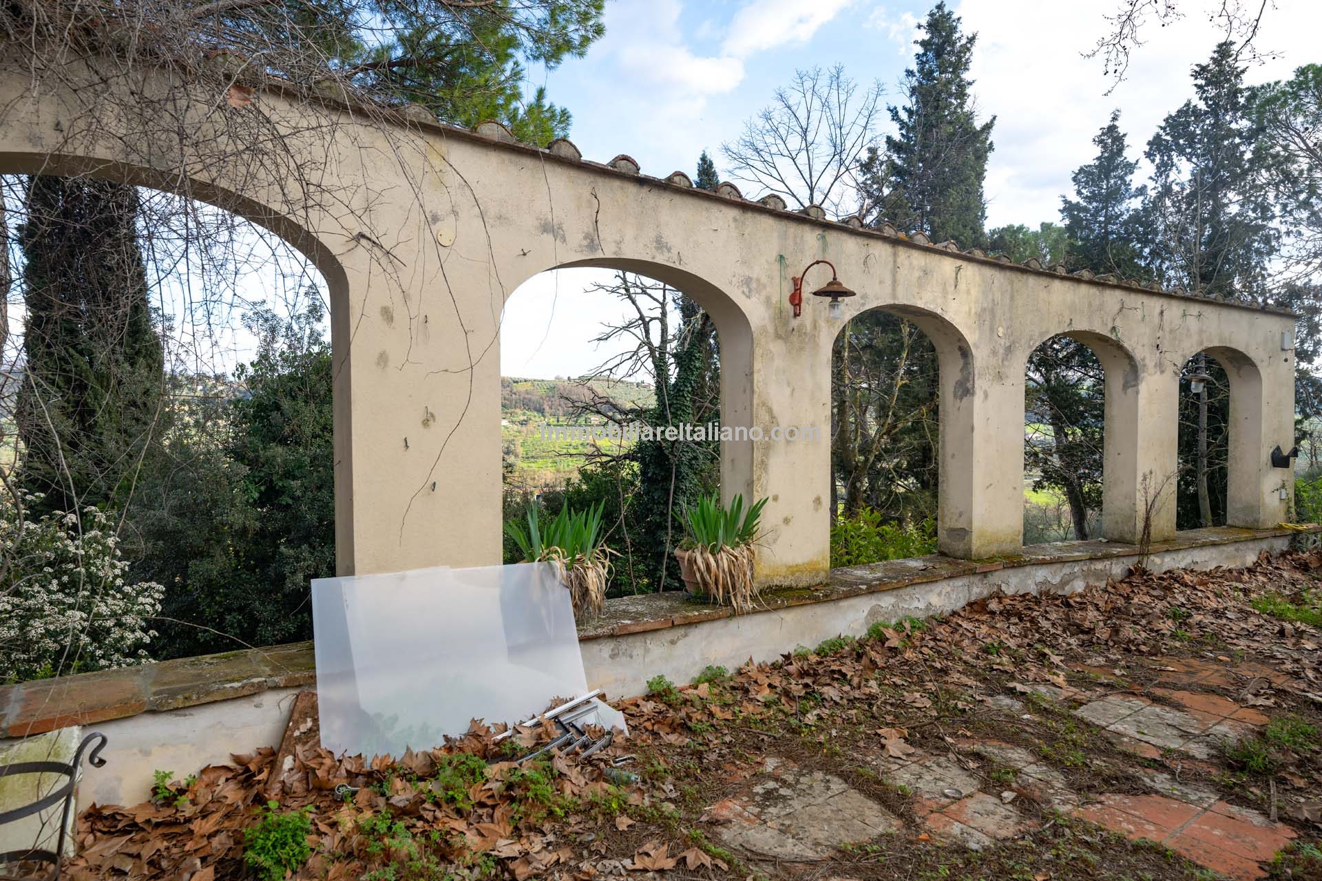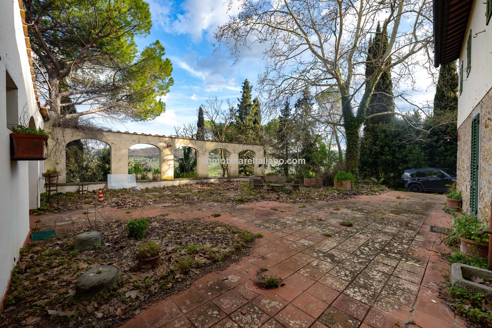 The villa is surrounded by a park of 4.4 hectares (10.9 acres) that includes a garden portion around the buildings, a large olive grove (2.8 ha) that needs to be recovered and some portions of arable land (about 1.0 ha covered largely by trees and bushes) to be cleaned and put back into use.