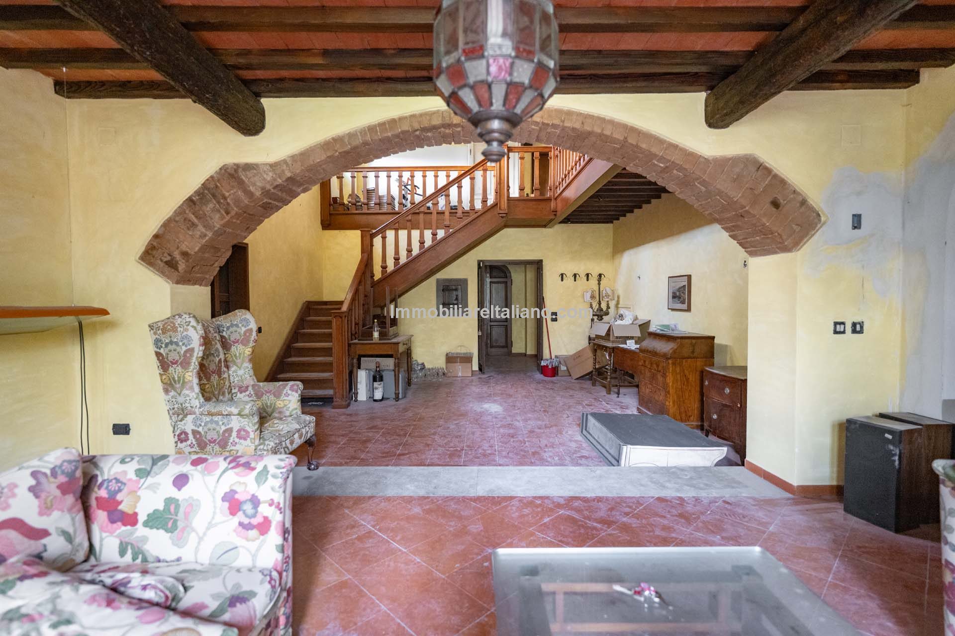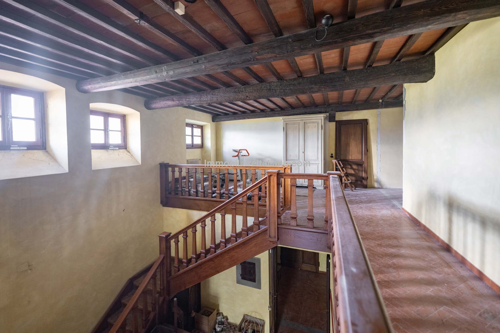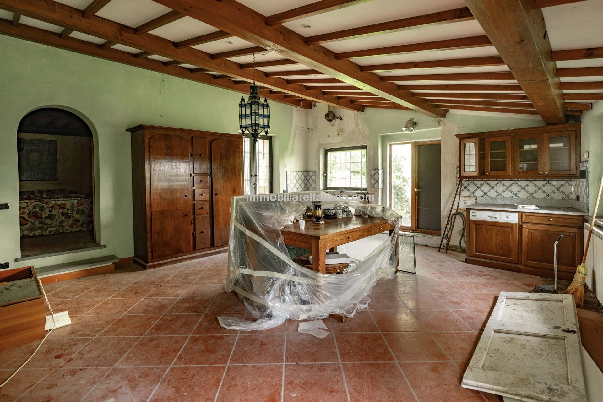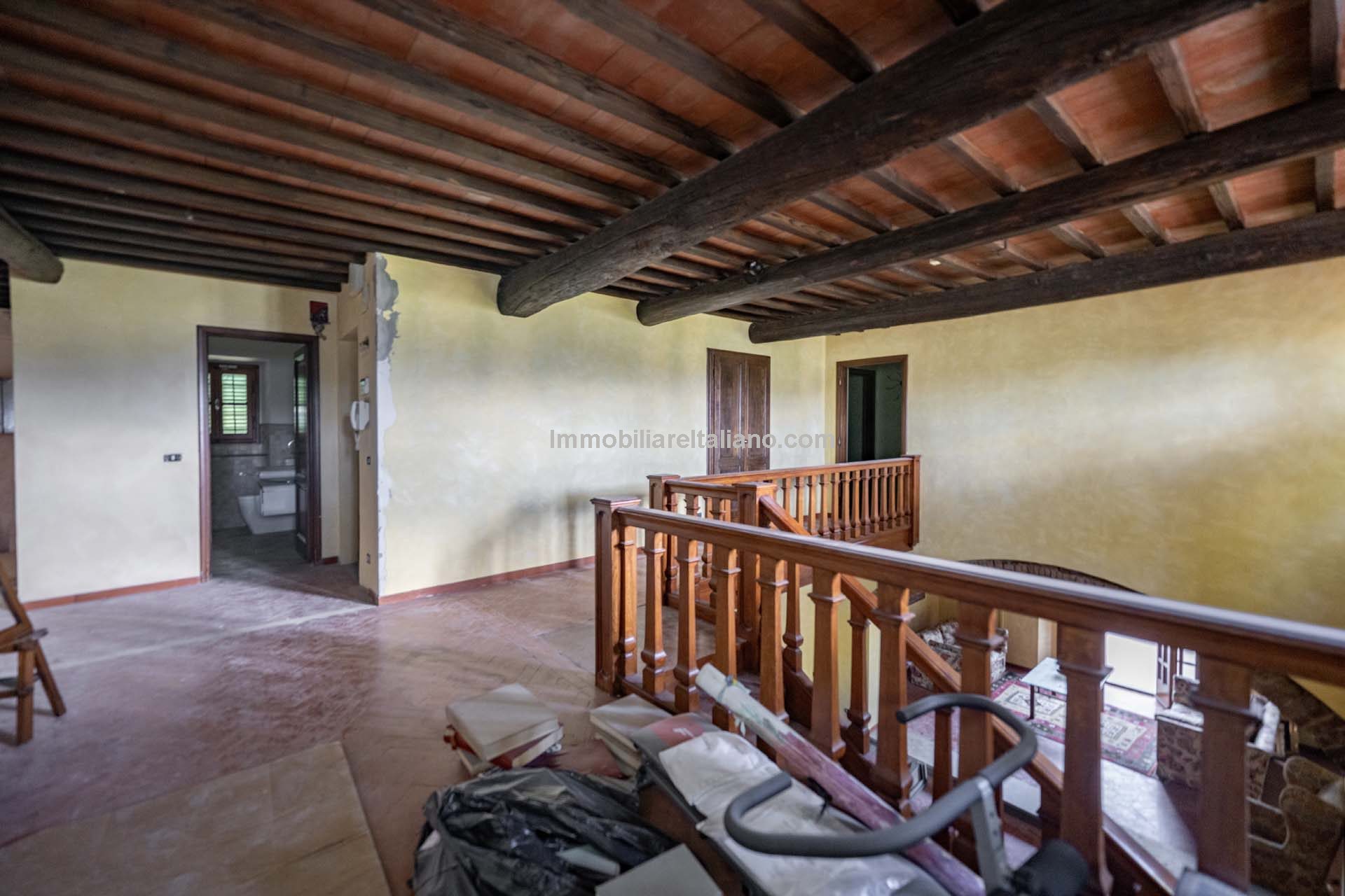- MAIN FEATURES: Brick walls, paved terrace, wooden beams, brick arches, terracotta floors, original fireplaces, veranda, loggia with columns, guesthouses, buildings to be restored, olive grove