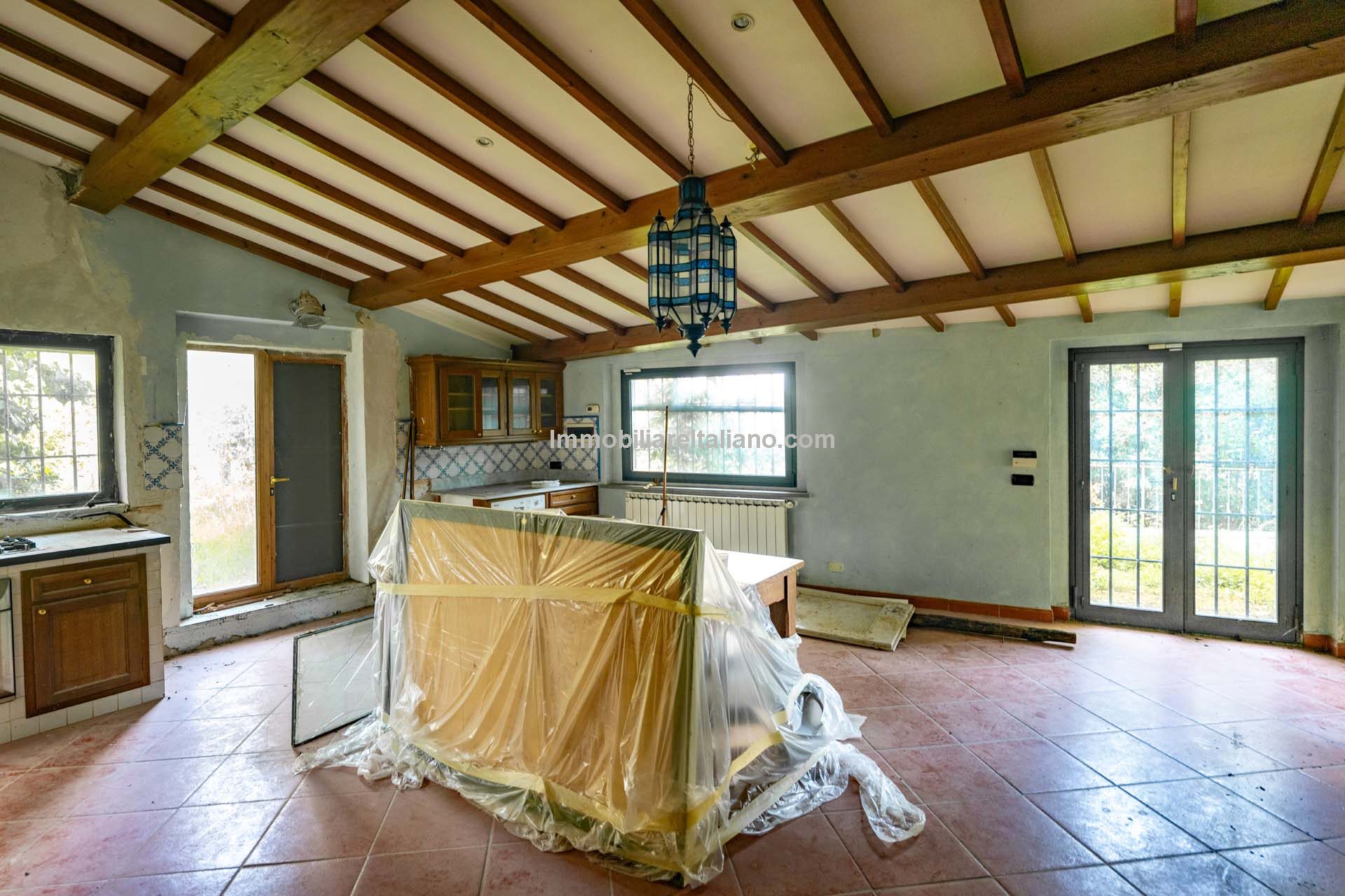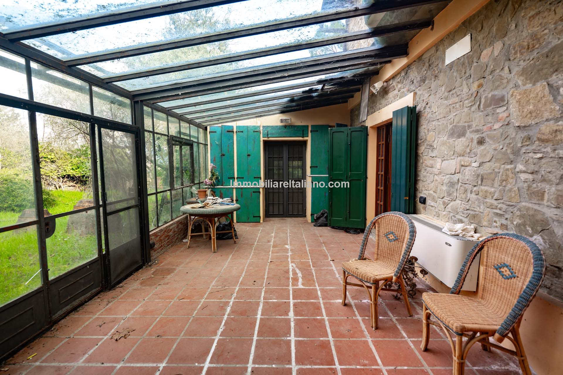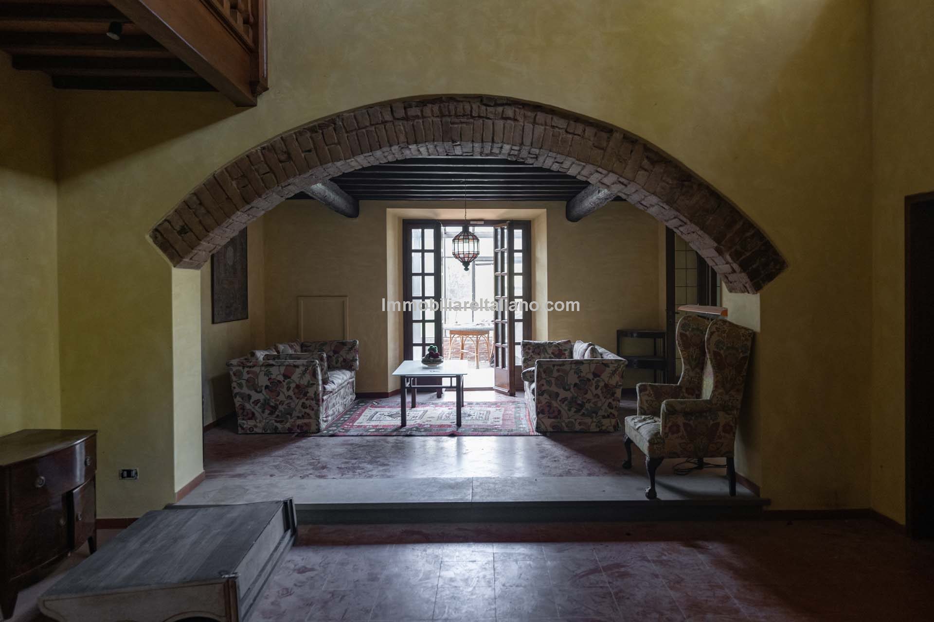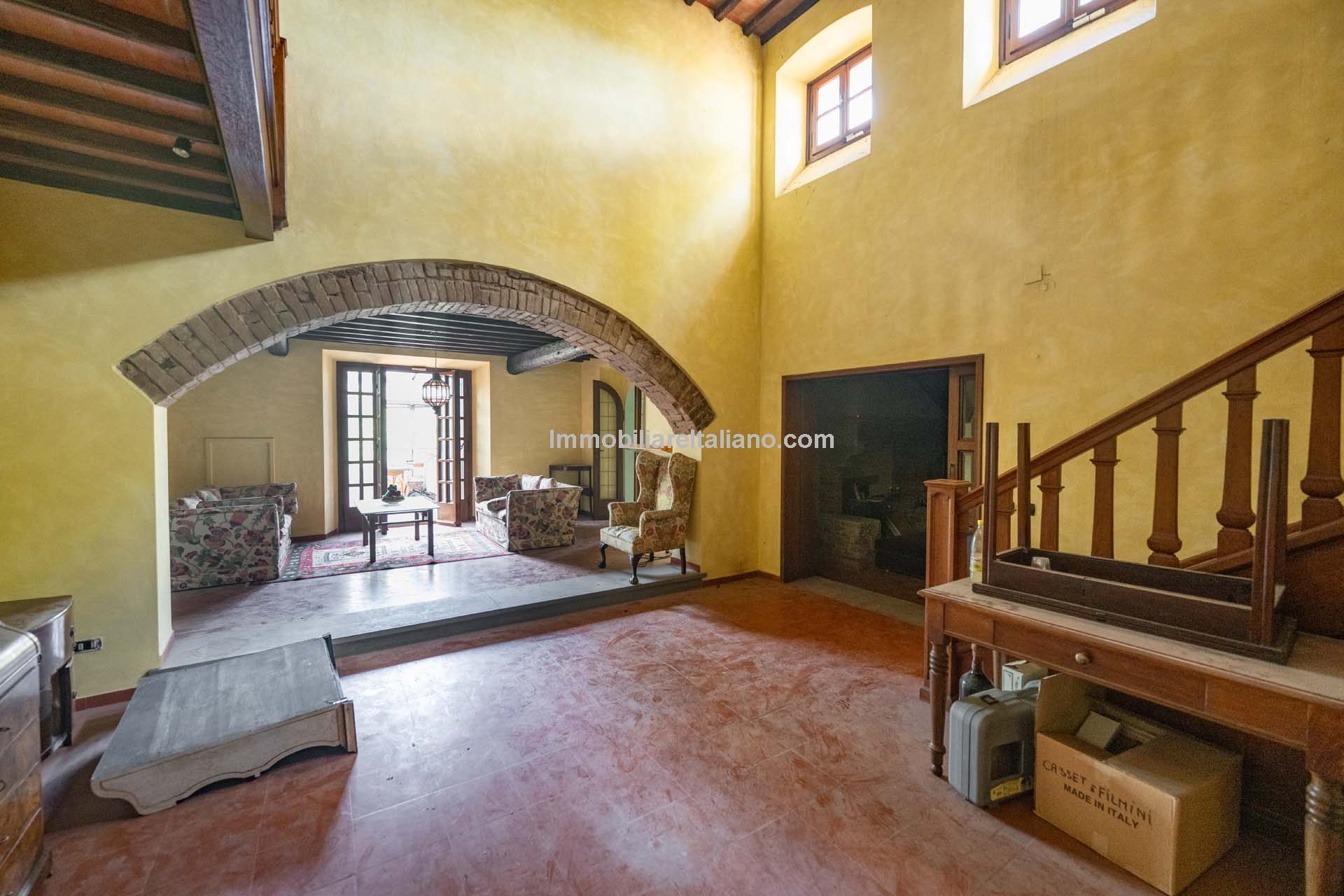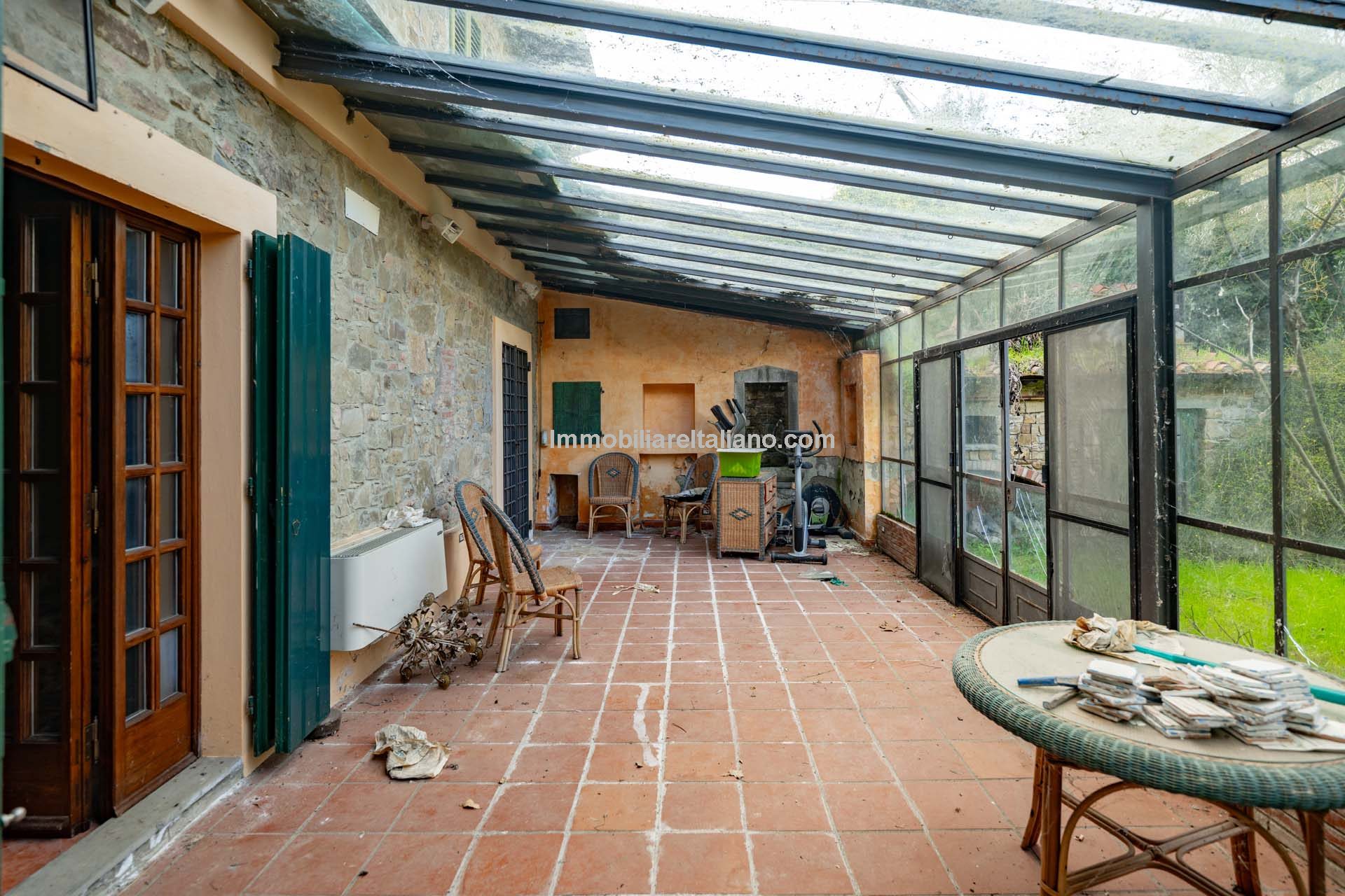 - MAIN FEATURES: Brick walls, paved terrace, wooden beams, brick arches, terracotta floors, original fireplaces, veranda, loggia with columns, guesthouses, buildings to be restored, olive grove