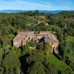 Historic monastery property for sale in Tuscany near Greve in Chianti. A 6,200 sqm medieval abbey with land and farmhouses, ideal for luxury home or boutique hotel restoration.