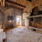 The abbey covers approximately 6,200 sqm (71,016 sq ft) across multiple levels and includes more than 70 rooms, over 30 bedrooms and 30 bathrooms, plus two additional farmhouses that also require renovation. Original architectural details remain throughout the complex, including stone and brick walls, vaulted ceilings, frescoes, terracotta flooring, exposed beams, fireplaces, and a historic cloister with a well. Several wings contain the former church, living quarters, stables and cellars. Many rooms retain period elements that are suitable for restoration and adaptive reuse.