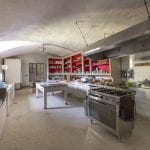The cellars with vaulted ceilings and stone columns are among the most striking areas of the abbey. At the same time, the residential wing features frescoed walls, old fireplaces, and former kitchen spaces that could be redesigned for private or commercial use. The history of the abbey dates back to before 1040, with documented expansion between the 14th and 17th centuries, and the complex still preserves the character of a medieval monastic settlement.
