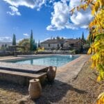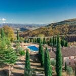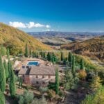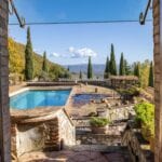Surrounding the farmhouse is a mature and well-maintained 9,800-square-metre garden, adorned with terraces and decorative cypress trees. The garden’s upper terrace hosts a 20 x 10-metre swimming pool with a terracotta and grass solarium, perfect for relaxation and leisure.