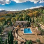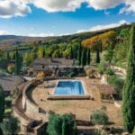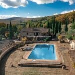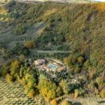 Nestled in the green scenic hills of Umbria, bordering Tuscany and Lazio, lies this sprawling 195.2-hectare organic farm, featuring an Agriturismo and a flourishing 34.8-hectare organic olive grove. This property, a gem in Italy’s agritourism sector, boasts an array of buildings spanning over 2,100 square metres in total, including a meticulously restored farmhouse, an efficient olive processing cellar, various utility warehouses, and some dilapidated farmhouses which are ripe for renovation. The potential for expanding guest accommodations is good, with the possibility of bringing the total number of bedrooms up to 20.