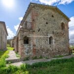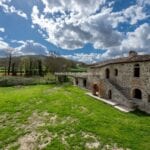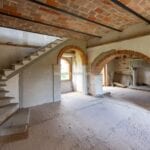 This part restored hamlet is located in a flat area near Città di Castello, just 600 metres from a small village with essential services. The property covers over 700 square meters and has been structurally consolidated, offering a blank canvas for customization. The buildings are surrounded by a fully fenced garden of 7,000 square metres (1.7 acres) with a gated entrance.