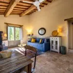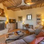 This fully renovated stone farmhouse is located in the hills of Umbria, close to Umbertide and Perugia, and offers a private setting with excellent access to services. The E45 freeway junction is less than 4 km away, allowing travel to Rome in just over two hours. Shops and supermarkets are within a 10-minute drive, and local caretakers and cooks are available on request. Golf enthusiasts can reach both Antognolla Golf Club, host of the 2022 Italian Open, and Golf Club Perugia in around 20 minutes.