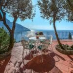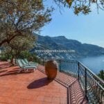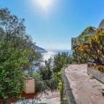 The villa is surrounded by approximately 245 square metres of sea view paved terraces and gardens. Adjacent to the villa is a stone-covered patio that offers a pleasant outdoor space for al fresco dining. At the rear, the terrace leaves space for a garden with typical trees and flowers from this part of the Amalfi Coast.