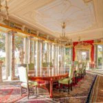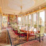 The property features an Italian-style garden with hedges, statues, columns, and a belvedere. An expansive English-style park surrounds the villa, interspersed with ornamental plants, terraces, avenues, and walkways. The garden also houses a removable glass and steel orangery for events and receptions.