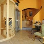 The wellness centre of the hotel has a Turkish bath, sauna, emotional shower, small pool, relaxation room, whirlpool bath, room with gym equipment.