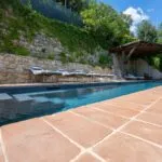 FEATURES Terracotta floorings, ceiling with wooden beams and terracotta tiles, stone fireplaces, panoramic terrace, pergola, BBQ, outdoor lighting, alarm system, automated irrigation system, swimming pool with automated cover, Daikin air conditioning system