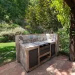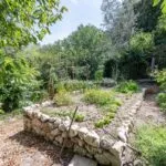 Raised ground floor: entrance room, large living room with fireplace, dining room with kitchen, small sitting room, utility room and toilette. The living room opens directly onto the chestnut pergola.