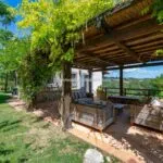 The villa includes a paved terrace with panoramic views and a pergola with BBQ, ideal for al fresco dining. The villa is surrounded by a 2160 sqm garden on two levels, perfectly maintained and completely fenced-in, with a parking area, fruit orchard, vegetable garden and olive trees and equipped with an automated irrigation system.