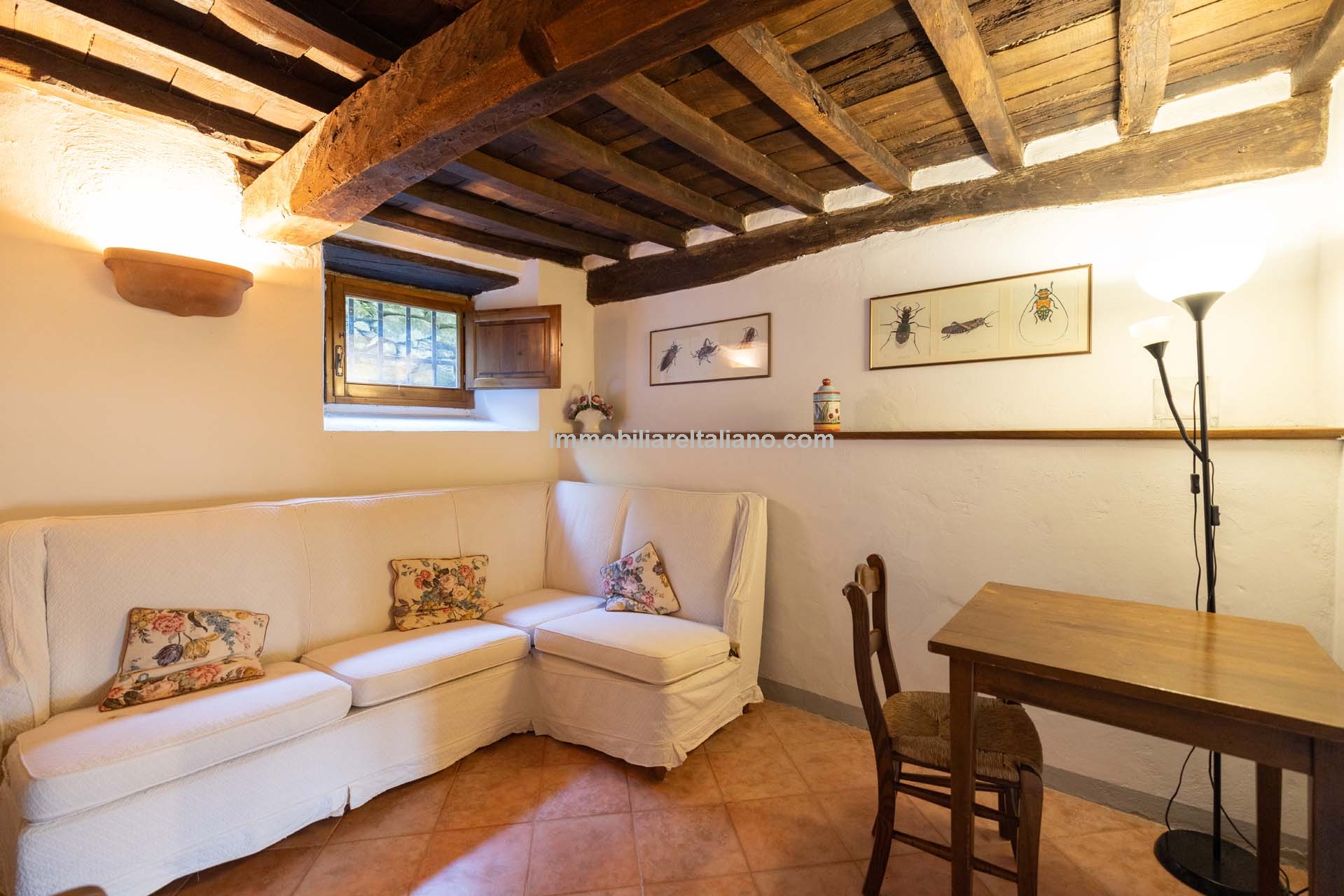- MAIN FEATURES: Stone and brick walls, wooden beams, terracotta and graniglia flooring, original fireplace, paved apron, olive grove
