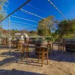 The estate boasts an established vineyard spanning 7.3 hectares (18 acres), certified organic, producing approximately 140,000 bottles of Valle d’Itria IGT wine annually. The vineyard cultivates a variety of grapes such as Cabernet Sauvignon, Malvasia Nera, and Susumaniello, underpinning the farm’s reputable wine production.
