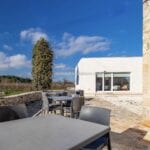 A comprehensive 20-kWh photovoltaic system, an artesian well with a 24-kW pump, and a 45-kW generator ensure sustainable and uninterrupted operation. The property is further enhanced by a mature orchard, an olive grove of 1.7 hectares, and a wooded area featuring a historical karstic grotto.