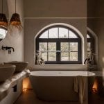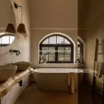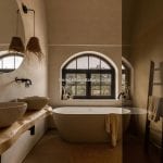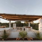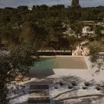 In the countryside near Ostuni in Puglia, this modern single-storey luxury villa is for sale. The property offers panoramic views and combines contemporary design with local architectural elements, such as barrel-vaulted ceilings. The interior includes a large open-plan living room and kitchen, three bedrooms, and four bathrooms, all finished to a high standard. A staircase from outside the house leads to a rooftop terrace with unobstructed views of the surrounding landscape.