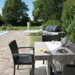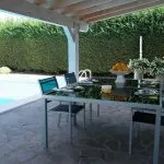 ROOMS Pergola, terracotta flooring, ceilings with wooden beams and terracotta tiles, large windows. Large patio facing the pool.