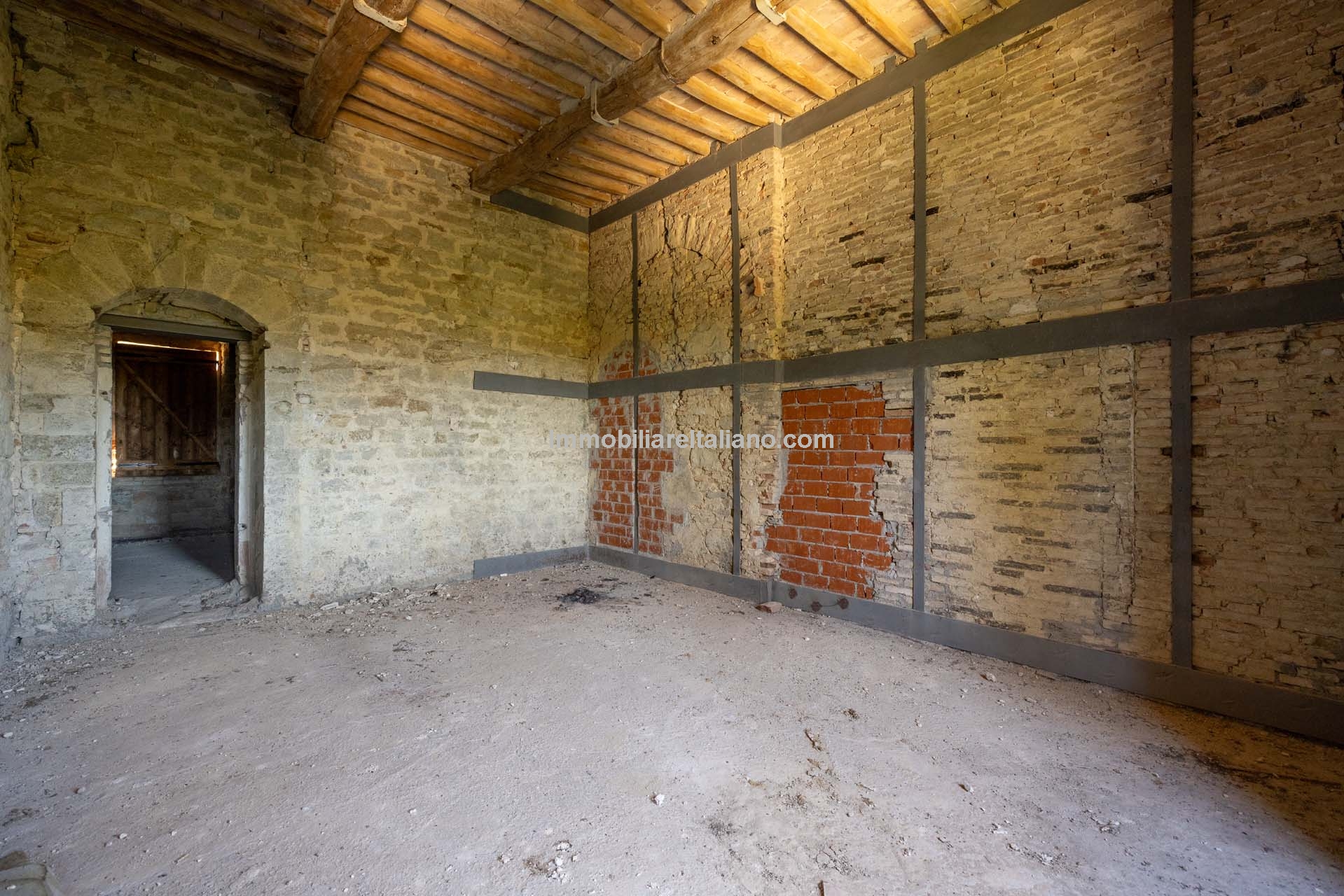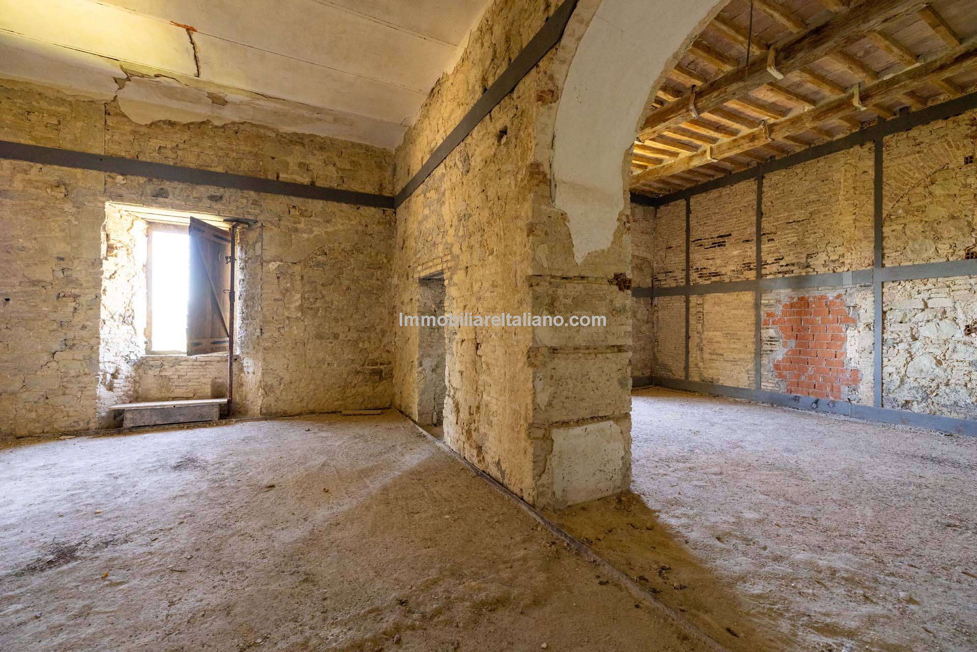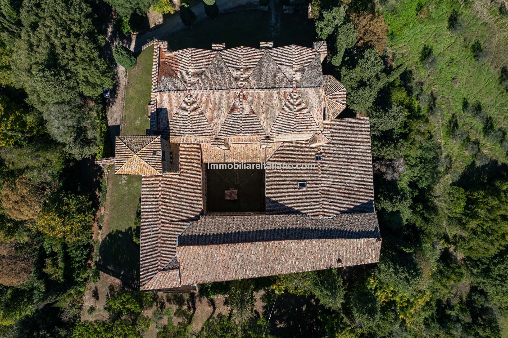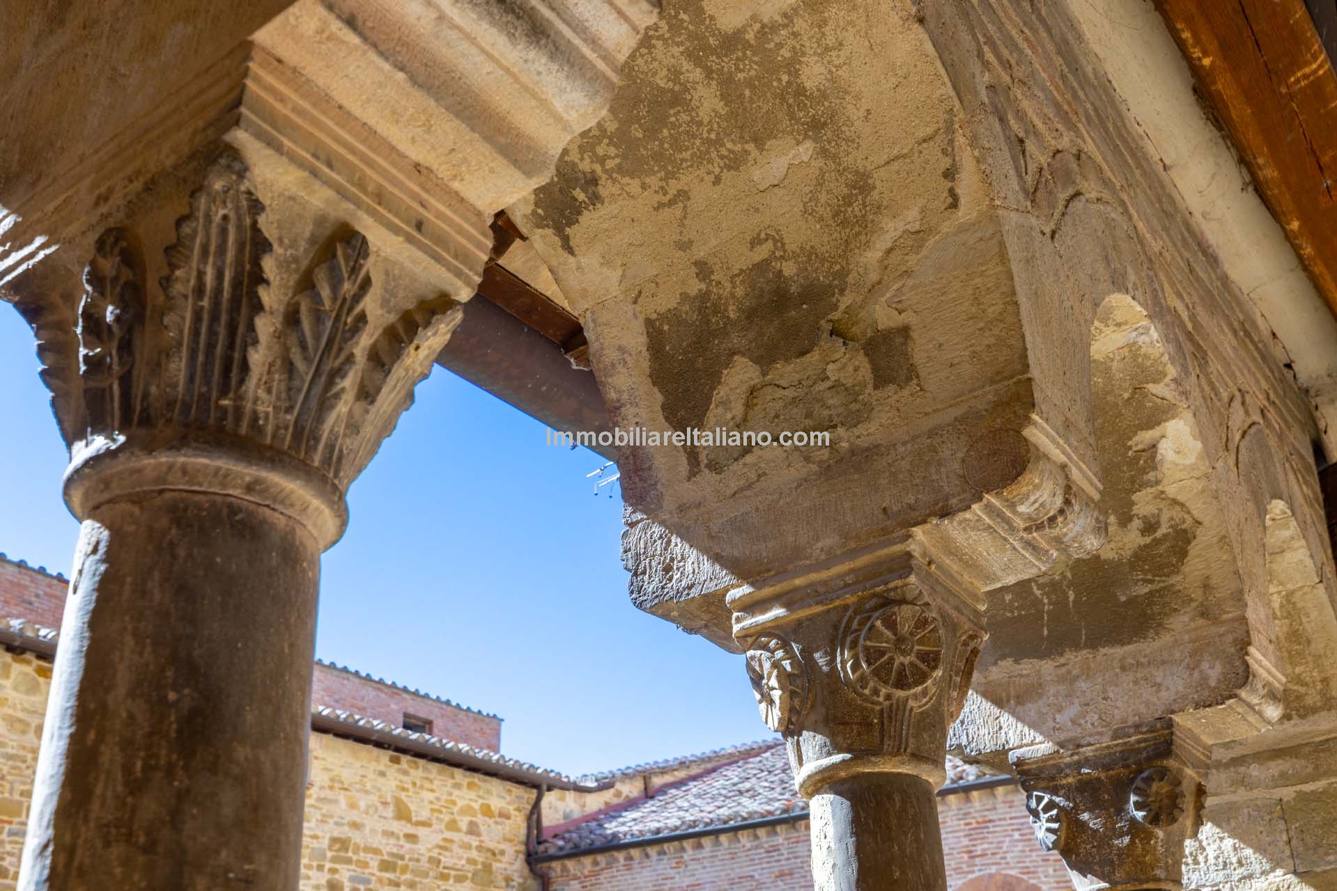 - MAIN FEATURES: Medieval abbey, stone and brick walls, wooden beams, coffered ceilings, cloister, 13th-century church, vaulted ceilings, crypt, original frescoes, terracotta floors, original fireplaces, country houses to be restored, ruins, vineyards, olive grove