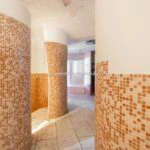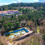 Slightly downstream, below the resort, is then a 50 × 25 m Olympic-size swimming pool, currently disused and equipped with locker rooms and a lounge bar (565 sqm – 6,079 sqft). Both the pool and the building are in need of major renovation.