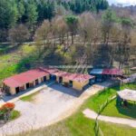 Moving away from the buildings, the property continues for about 18.4 hectares (45.5 acres) with meadows, arable land and wooded areas. Part of the arable land, located in a flat area, has been used for the construction of the riding school facilities (stables and paddock).