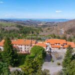 On the Tuscan hills between Val d’Orcia and Maremma, a very scenic location, is this resort for sale. The property (over 7,500 sqm) includes 108 guest bedrooms, wellness centre, restaurant, Olympic-size swimming pool and horse stables, and is surrounded by more than 40,000 sqm of wooded parkland with relaxation areas with a further 18.4 ha of land which is mostly woodland plus a thermal spring.