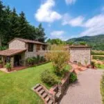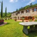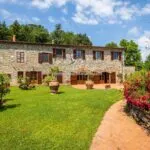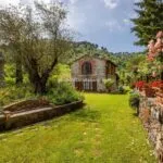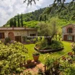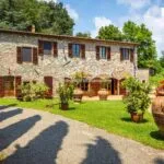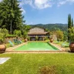 A restored country farmhouse villa property with a converted barn in Tuscany for sale. Located near Lucca the property has a total of 12 bedrooms and 12 bathrooms, a garden with olive trees, woodland, a tennis court and a swimming pool.