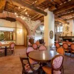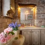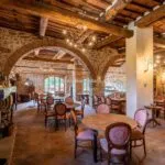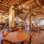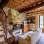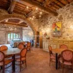 The property has been finely renovated and restored by the current owners keeping and enhancing traditional features while adding creature comforts and modern and refined touches. The stone and brick structure is still visible on the outside, while inside the walls are plastered and painted in warm colours that make the rooms inviting. In the main hall, the fireplace is framed by four paintings depicting four symbolic places of Lucca (including Porta San Gervasio in Lucca, Ponte della Maddalena in Borgo a Mozzano and Villa Mansi in Segromigno). Other rooms contain paintings and frescoes depicting rural scenes, hunting parties and views of the Tuscan countryside.