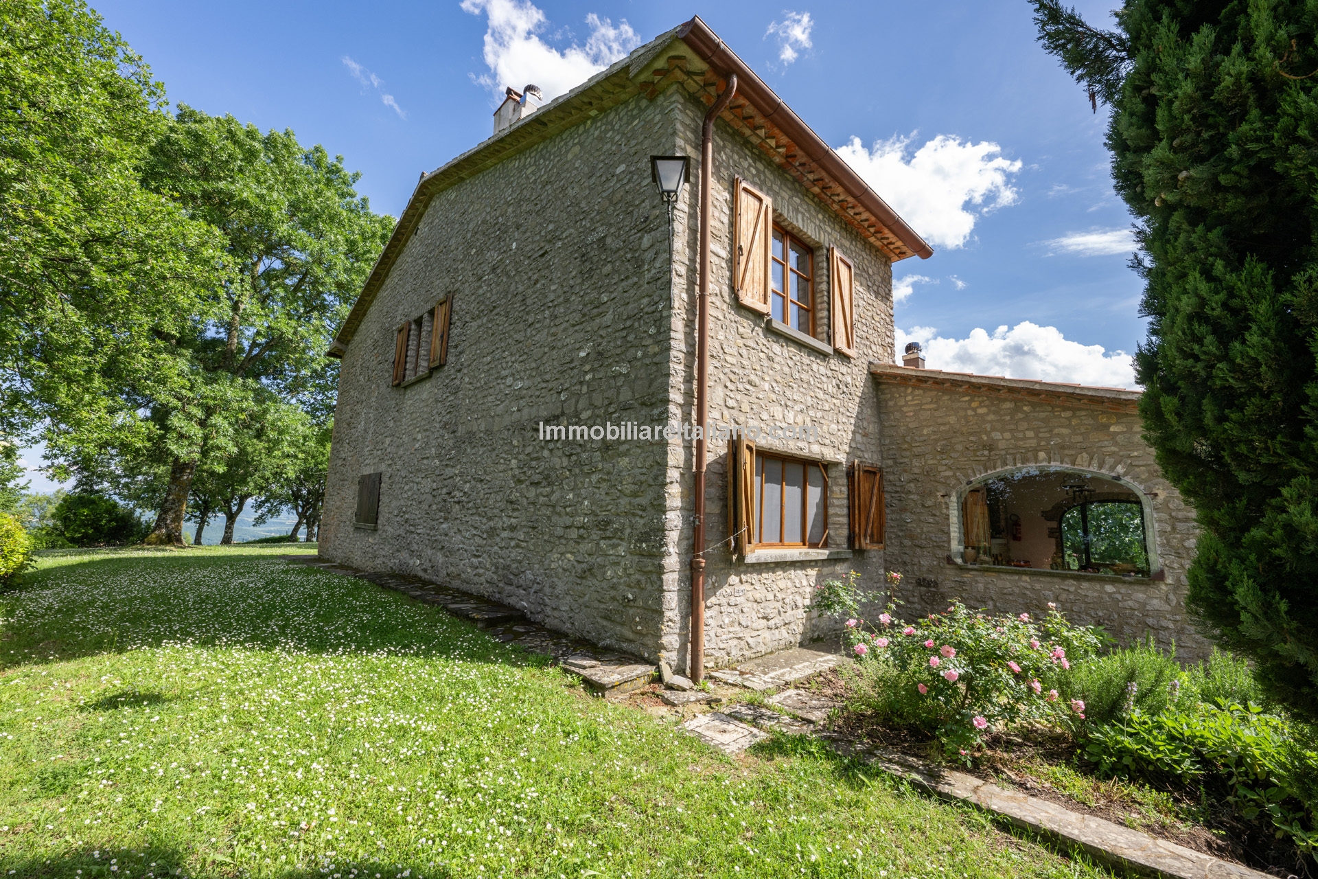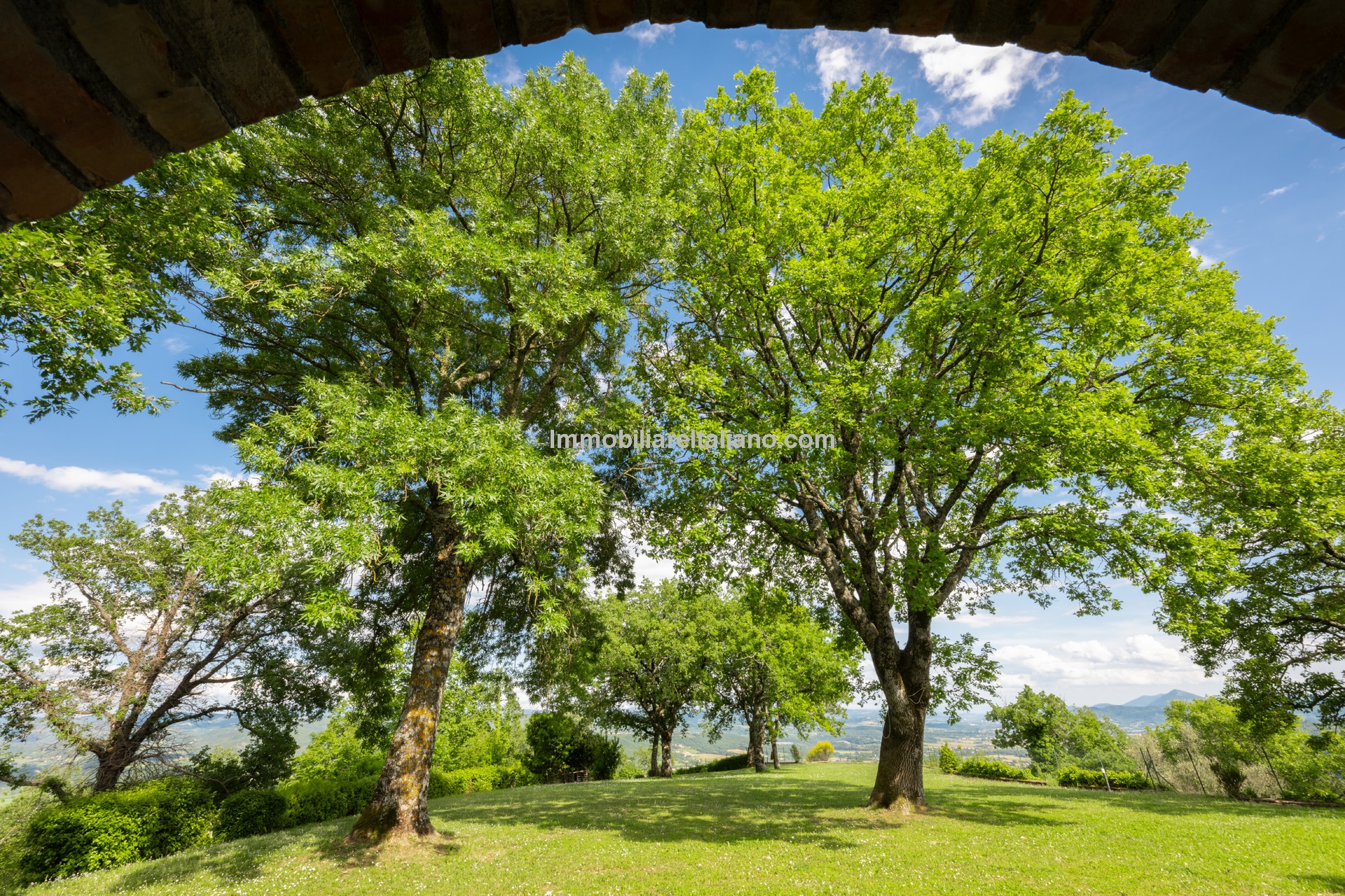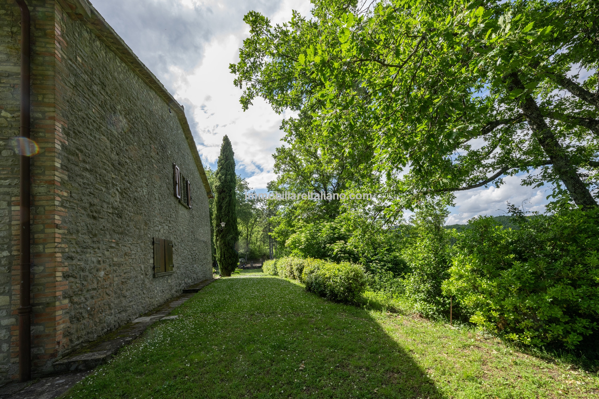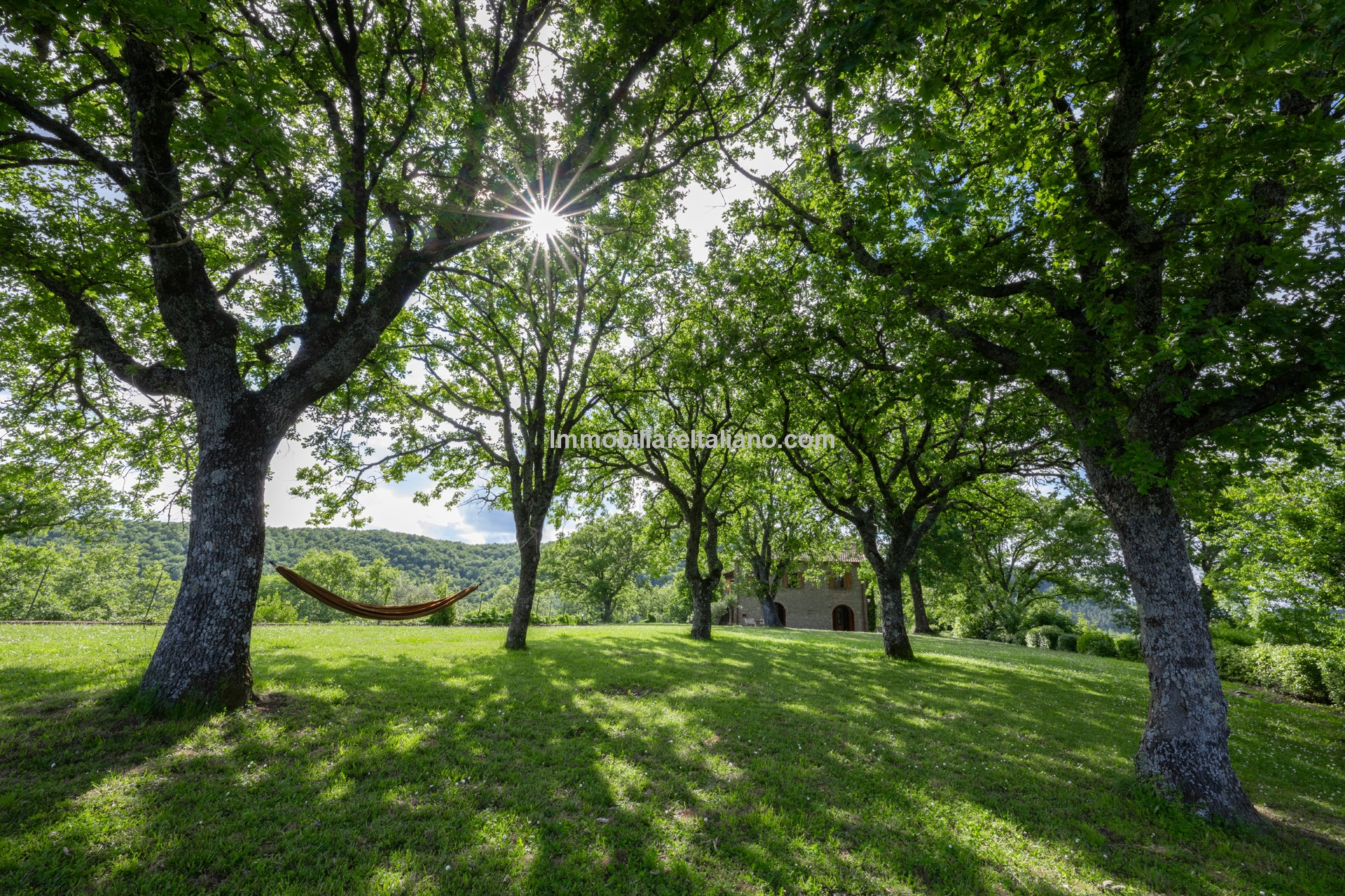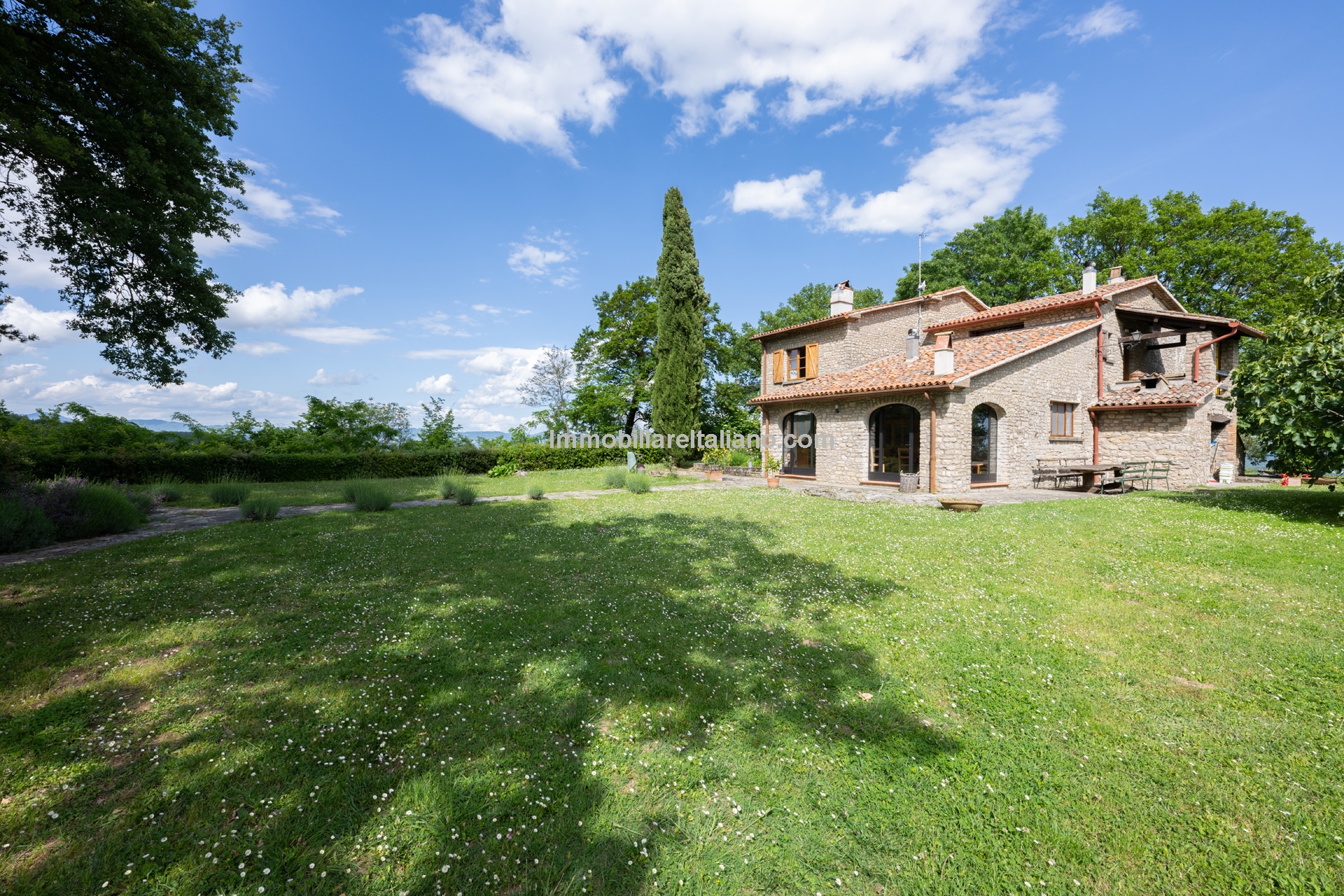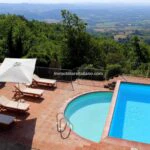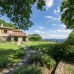 Restored farmhouse home with pool for sale near Città di Castello, Umbria. 5 bedrooms, 9.3 hectares of land and gardens, tennis court, panoramic views.