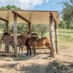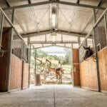 Located to the south of the main buildings, on level ground, is a substantial stable covering an area of 202 square metres (2,173 square feet). The stable accommodates six horse stalls, complete with drinking and feeding troughs, an outdoor paddock, a tool storage area, and a shower facility for the animals.