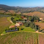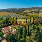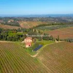 San Gimignano wine farm and Agriturismo for sale comprising 168.5 hectares with DOCG vineyards, olive groves, guest apartments, and wine production facilities. Italian vineyard for sale in Tuscany with development potential.
