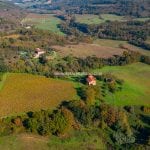 Farmhouse Becci (476 sqm) has been converted into six guest apartments, with an additional communal hall (174 sqm) and kitchen for events and guest use. Two agricultural storerooms (113 sqm) are located adjacent. Nearby, a one-bedroom outbuilding (House Pettini) offers further guest accommodation.