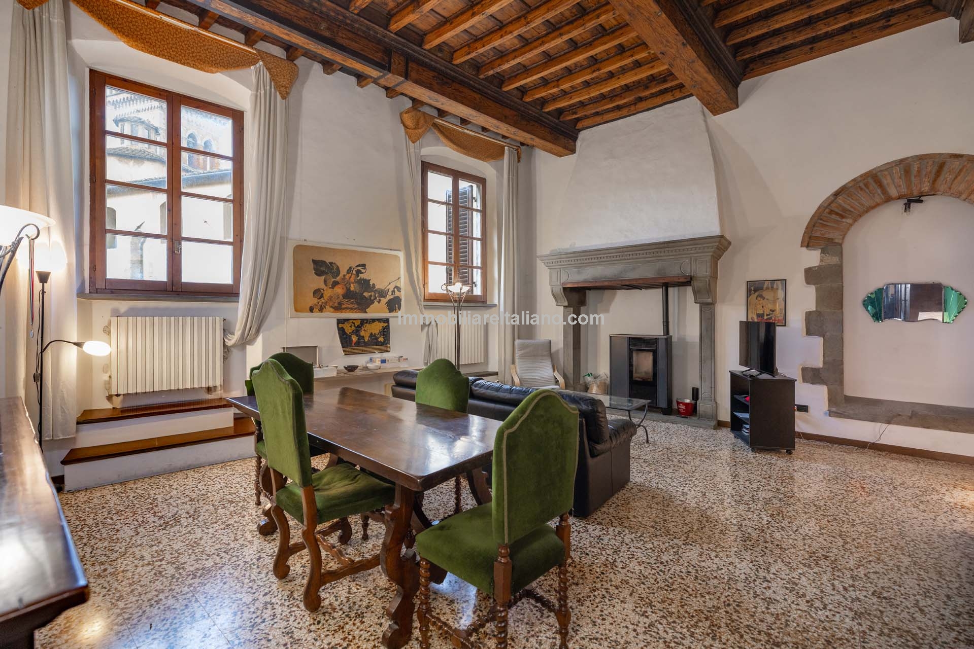 Located in the historic centre of Sansepolcro, just steps from Piazza Torre di Berta, this substantial period property offers approximately 474 sqm (5,100 sqft) of internal space and comprises a total of eight bedrooms and five bathrooms, arranged across five independent residential units.