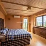 The surrounding land is primarily woodland, providing privacy and environmental value. Productive areas include an olive grove with approximately 50 trees and a small orchard. Water supply is ensured through private wells and cisterns, while high-speed internet is provided via Starlink. The property operates entirely on electricity and has an energy rating of C.