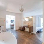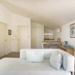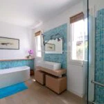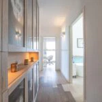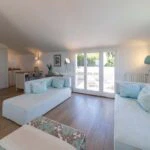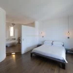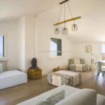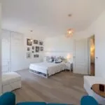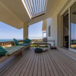 The first floor includes four bedrooms. The main bedroom has a walk-in wardrobe, en-suite bathroom with an Agape bathtub, and access to a private portico. All bedrooms enjoy natural light and sea views. The upper level offers further flexibility with a large living area, a kitchenette, guest bedroom, and a bathroom, making it suitable for guests or as a separate space for extended family.