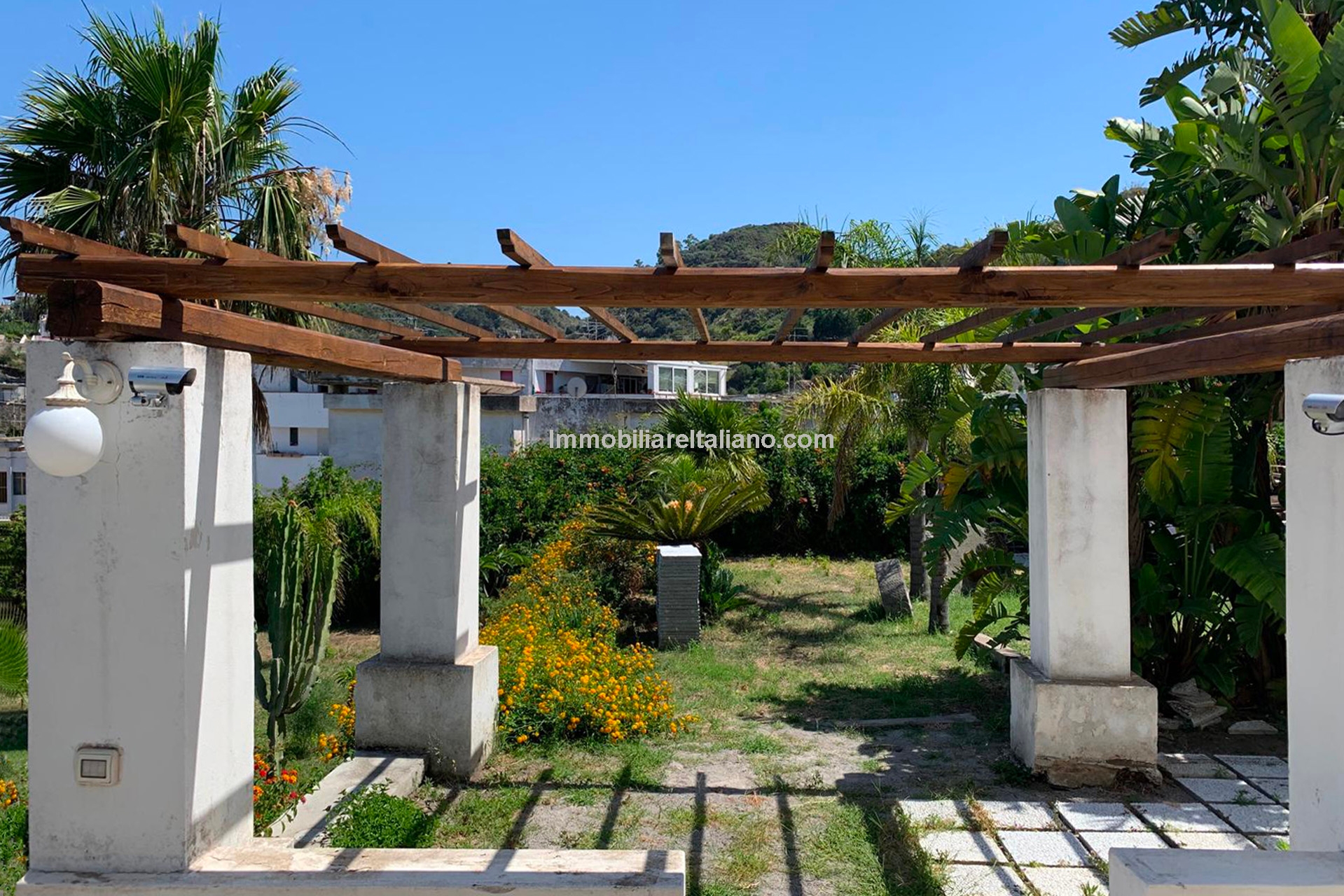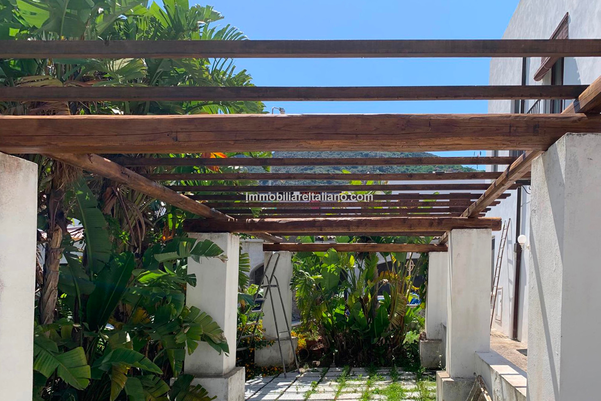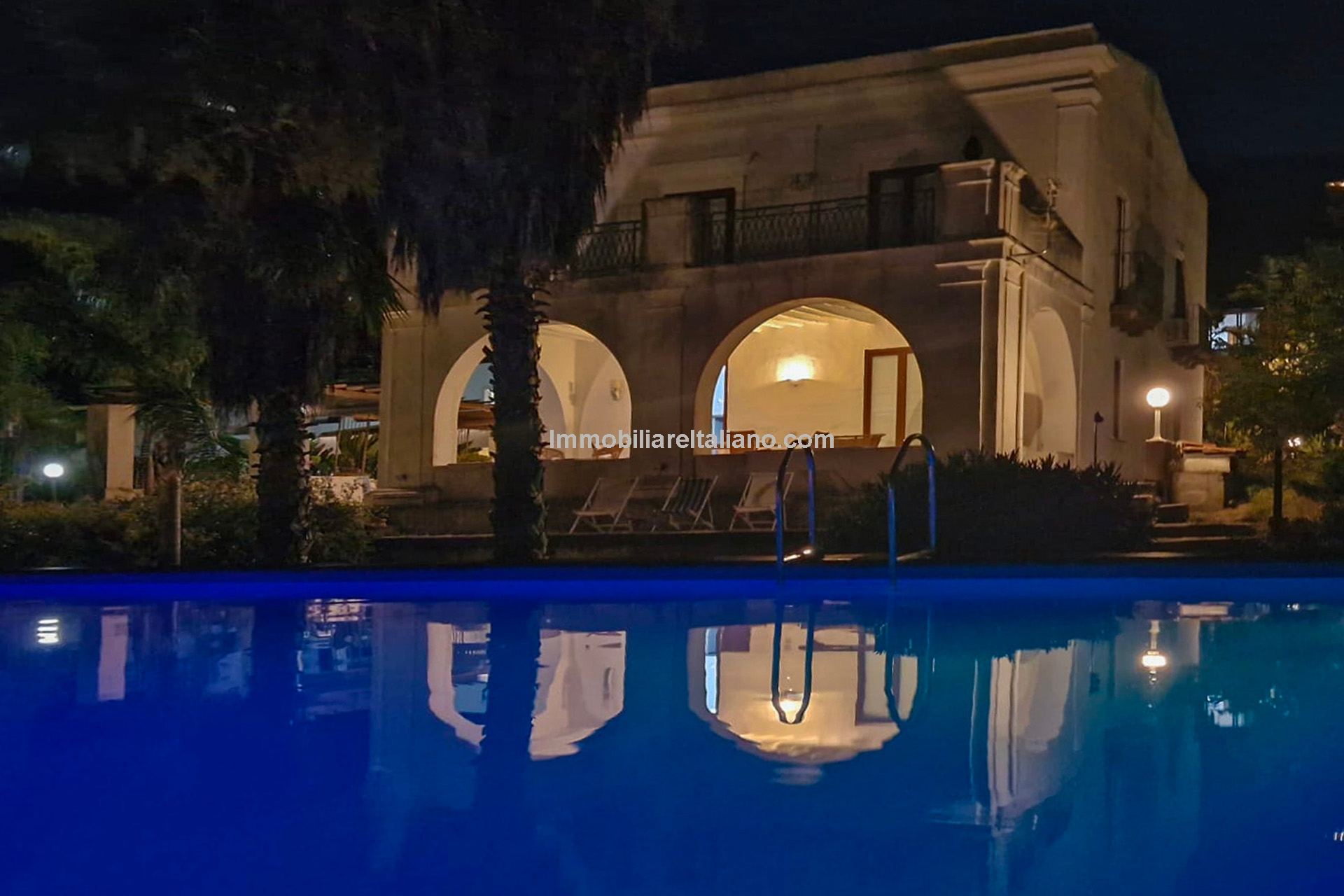 Historic seaside home for sale in Lipari, Italy. Late 18th-century villa with sea view, garden, pool, and orchard, just 100 m from the beach and near the port.