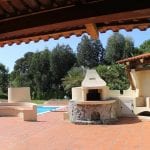 The villa is surrounded by over 2400 square metres of garden and has a stunning pool of 72 sqm. There is also an external shower, a barbecue, a pizza oven, an outside kitchen and storage.