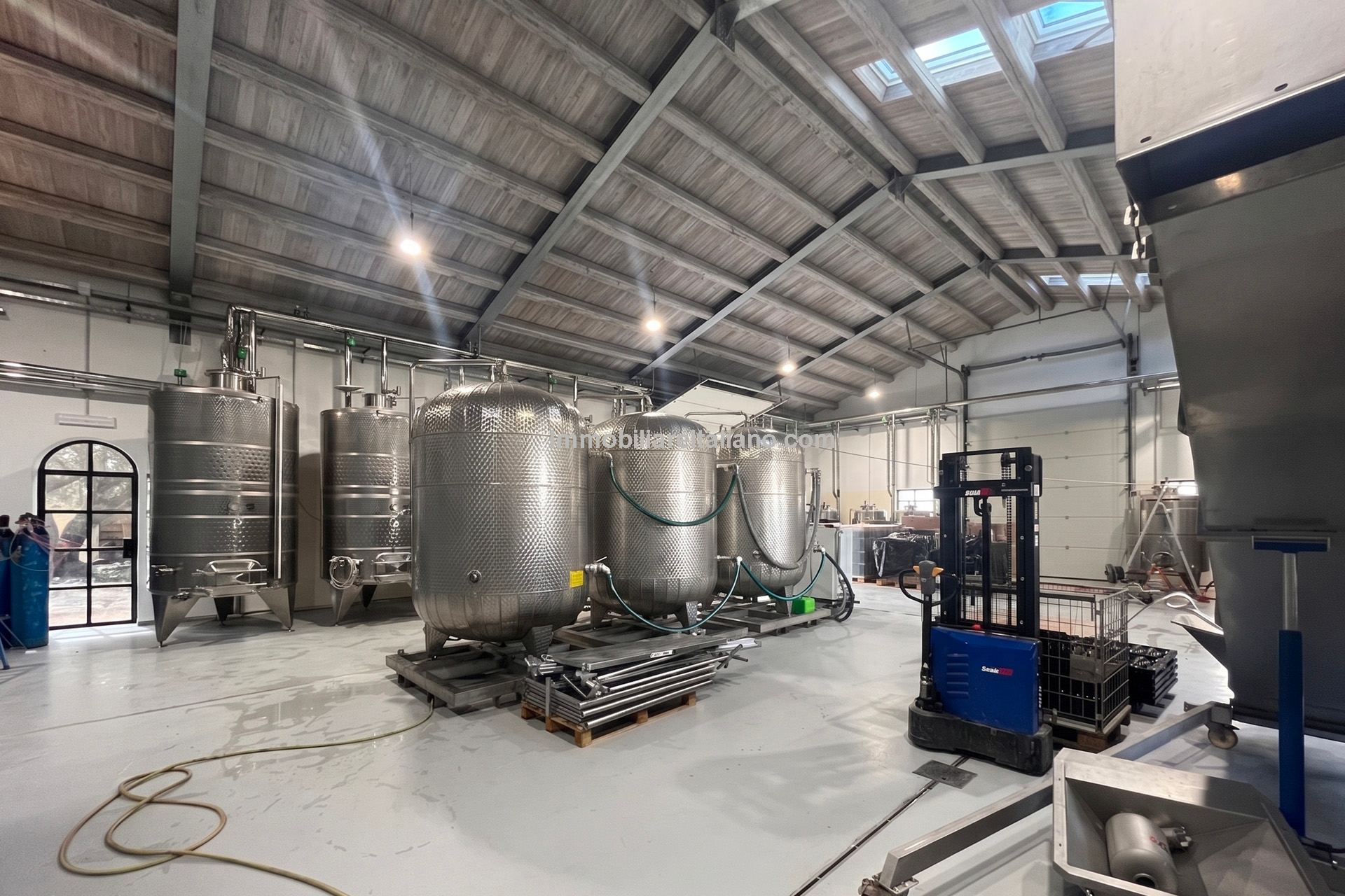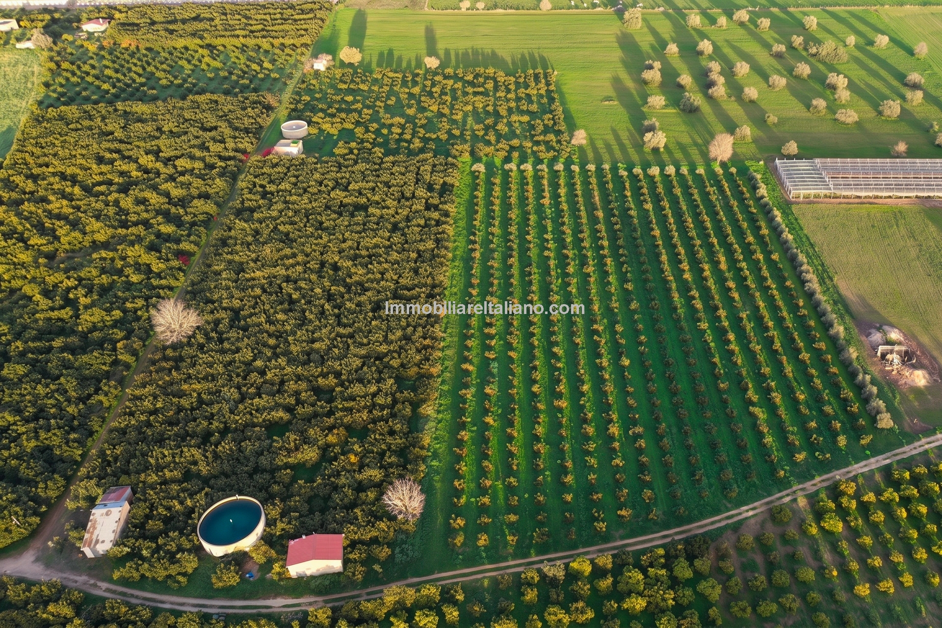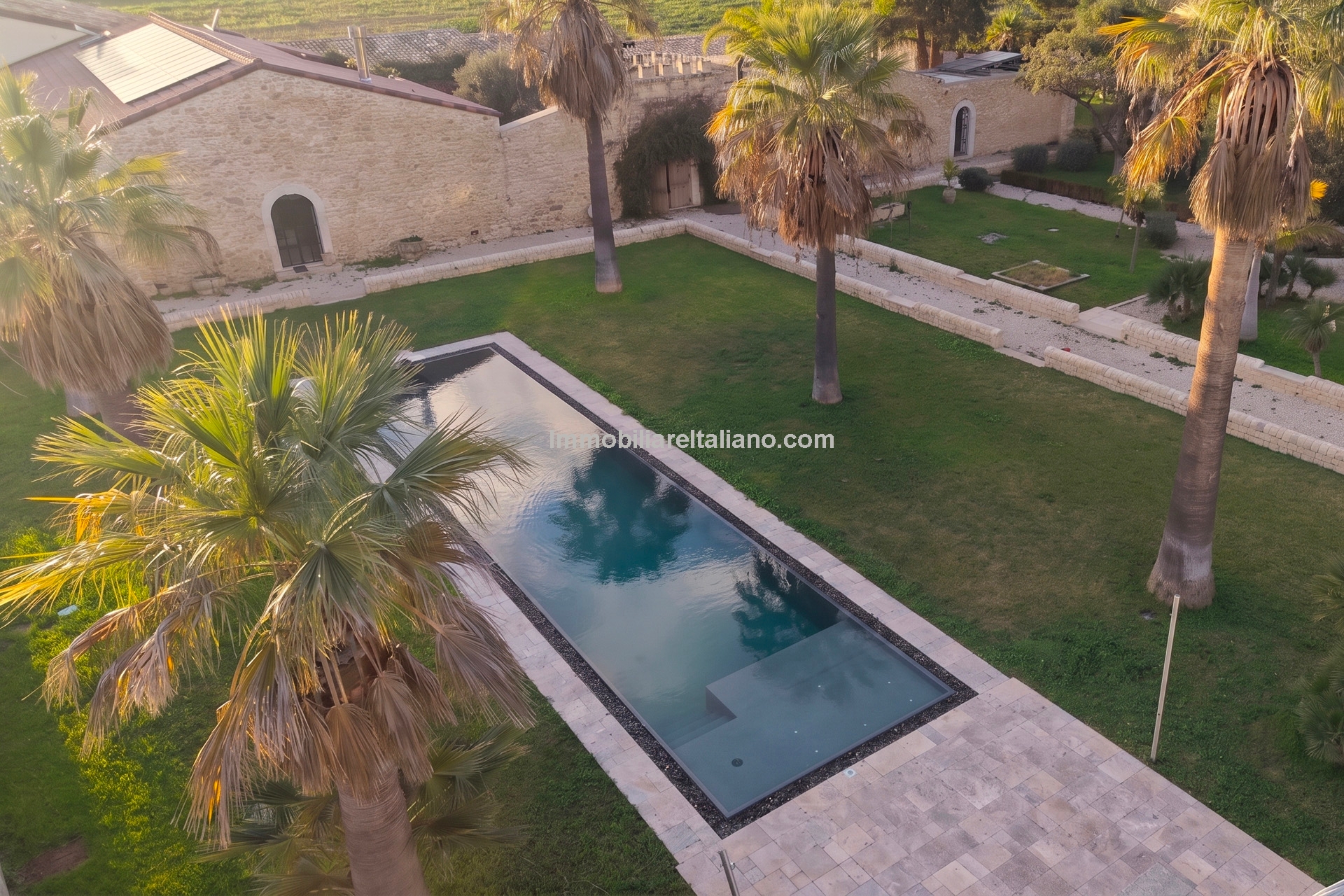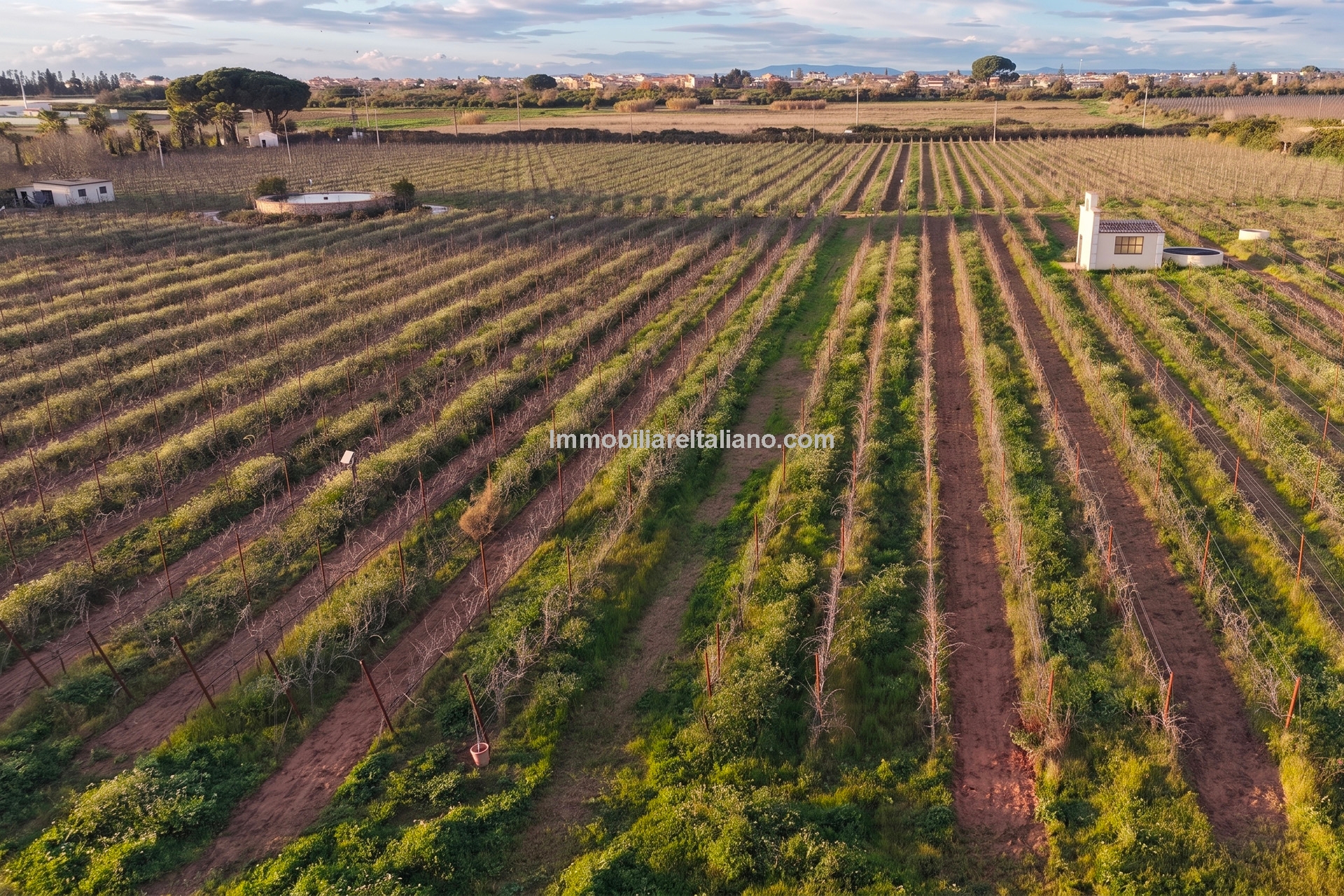 Externally, the estate includes landscaped gardens around the buildings, a 19 × 4 metre swimming pool, and open land with vineyard rows. The vineyards are planted with a mix of grape varieties typical of Sicilian wine estates, supporting consistent annual production. The winery is modern and fully equipped, with dedicated areas for fermentation, storage, and wine processing, allowing the business to operate independently on site. Infrastructure includes private wells for water supply, electricity connection with solar support, internet connectivity, and paved access roads.