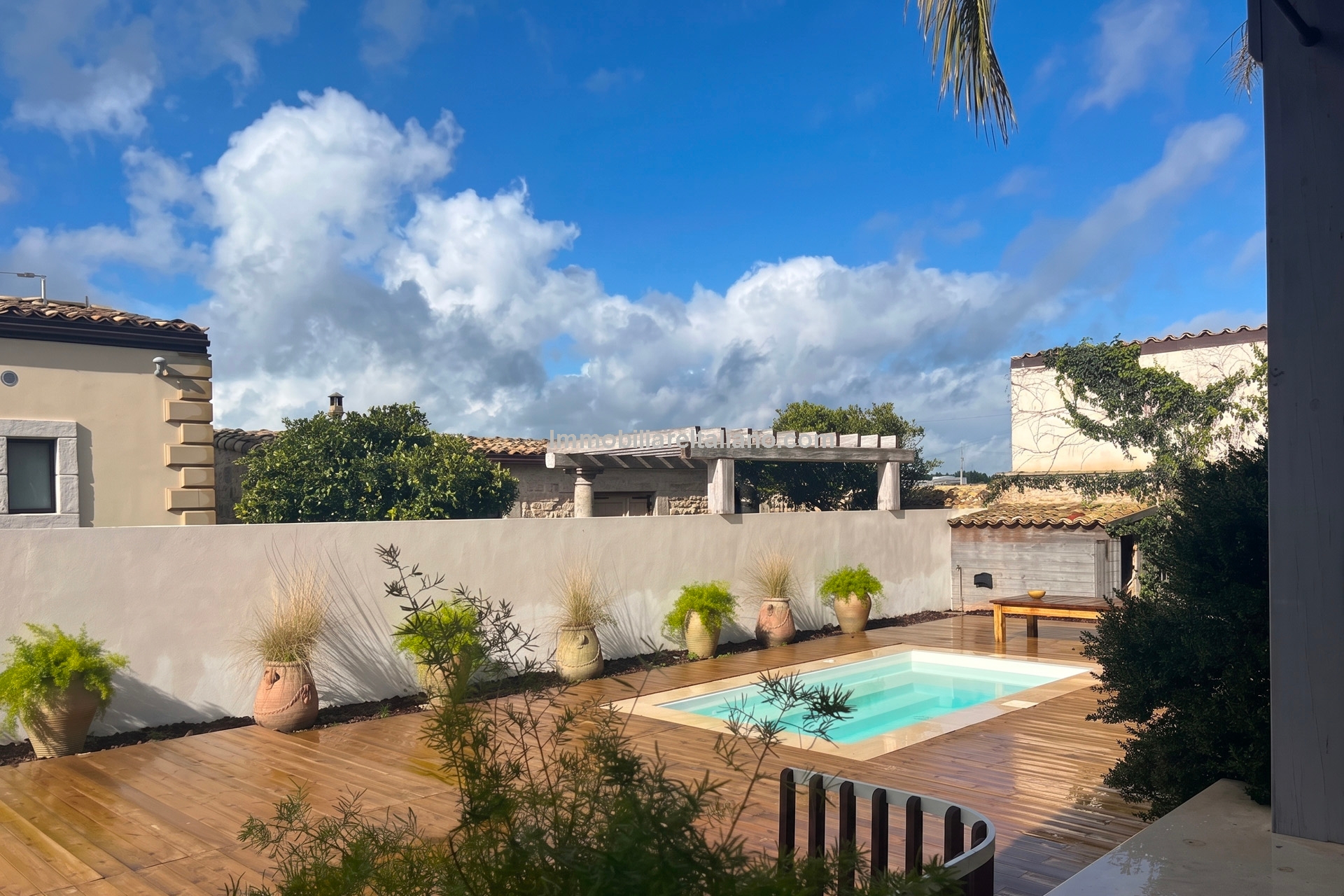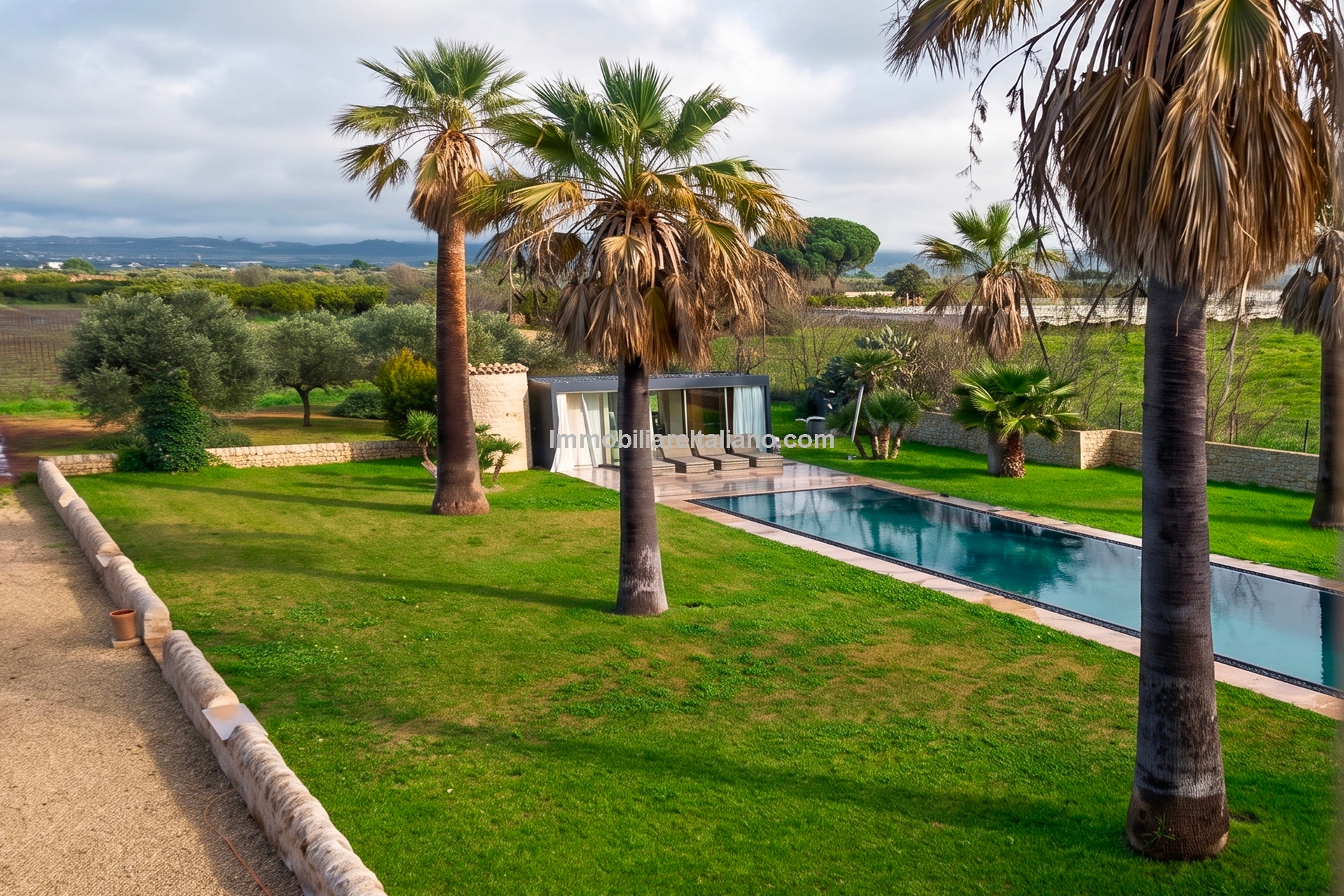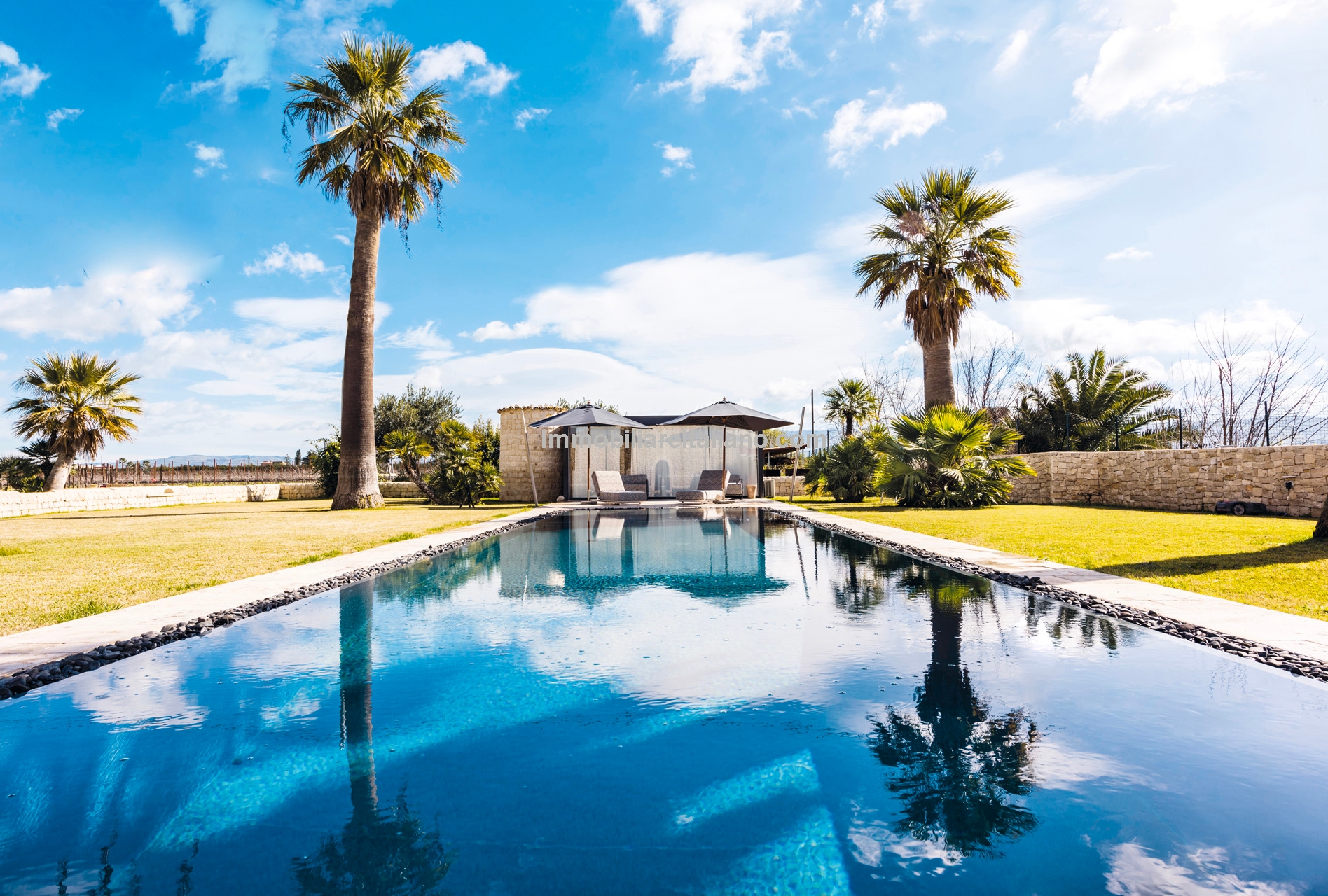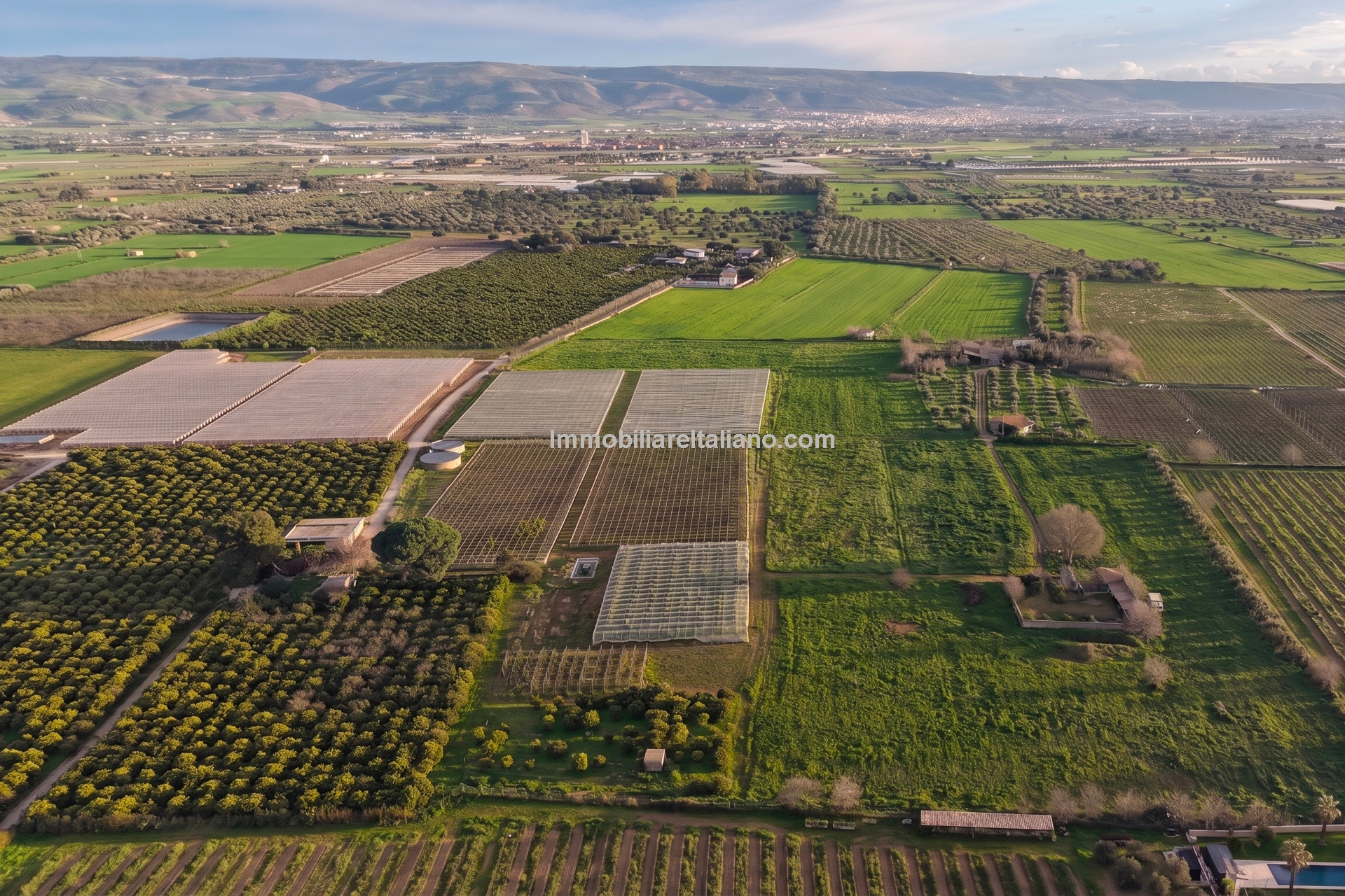 Externally, the estate includes landscaped gardens around the buildings, a 19 × 4 metre swimming pool, and open land with vineyard rows. The vineyards are planted with a mix of grape varieties typical of Sicilian wine estates, supporting consistent annual production. The winery is modern and fully equipped, with dedicated areas for fermentation, storage, and wine processing, allowing the business to operate independently on site. Infrastructure includes private wells for water supply, electricity connection with solar support, internet connectivity, and paved access roads.
