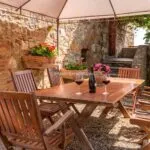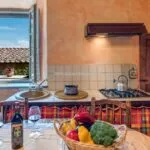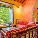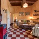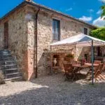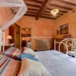 The building has been completely refurbished and retains the rustic beauty typical of these Tuscan country houses. The construction has characteristic mixed stone/brick walls on the outside, and it was decided to keep the original timber beams and terracotta flooring throughout. In addition, all of the rooms have air conditioning to offer optimal comfort for guests.