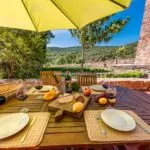 – Apartment N°2 (82 sqm – 882 sqft, 2 bedrooms and 1 bathroom): kitchen with 17th-century fireplace, living room with pool view, two bedrooms and bathroom;